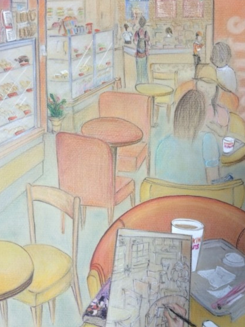 2008년 던킨 실내 모습을 파스텔로 그려보았다. 이 시절에는 주로 던킨에서 그림을 그렸다.