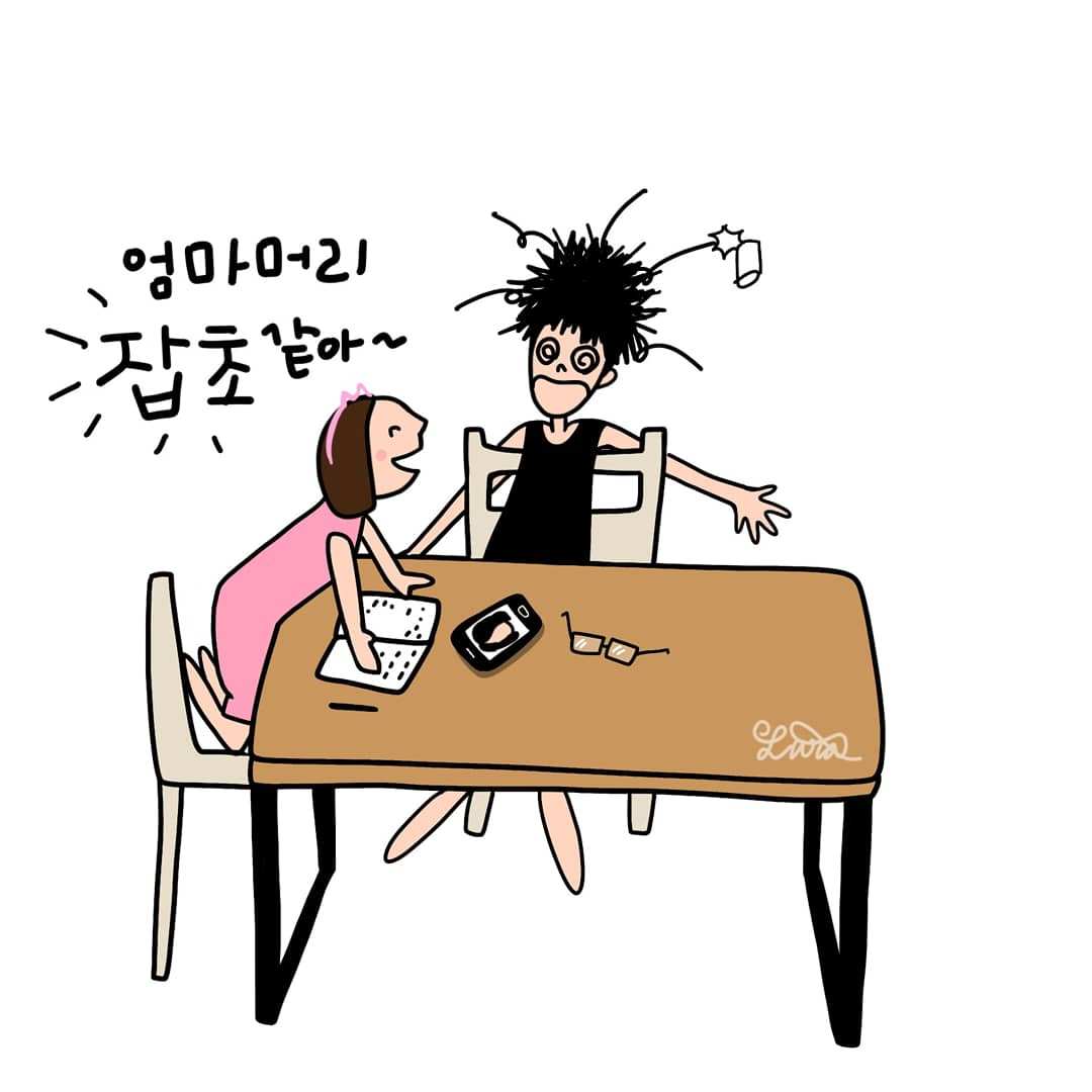 리라: (갑자기 얼굴을 코앞까지 들이밀더니) 엄마 그거 알아? 엄마~ 머리~ 잡초 같아!