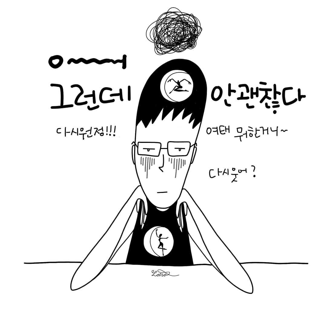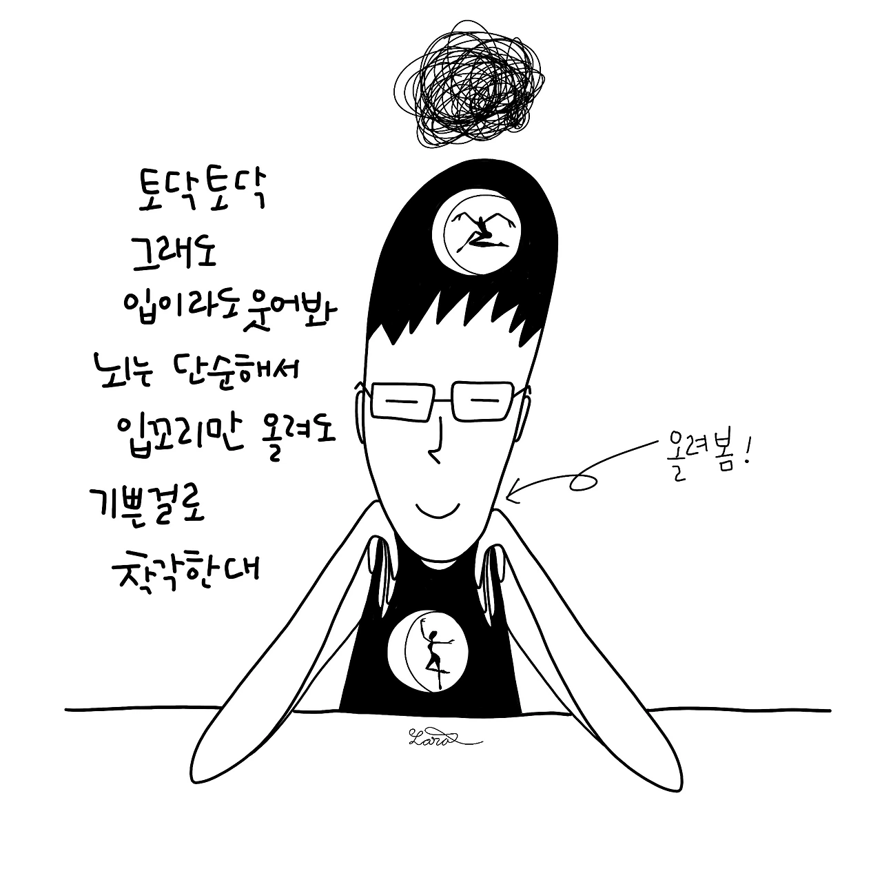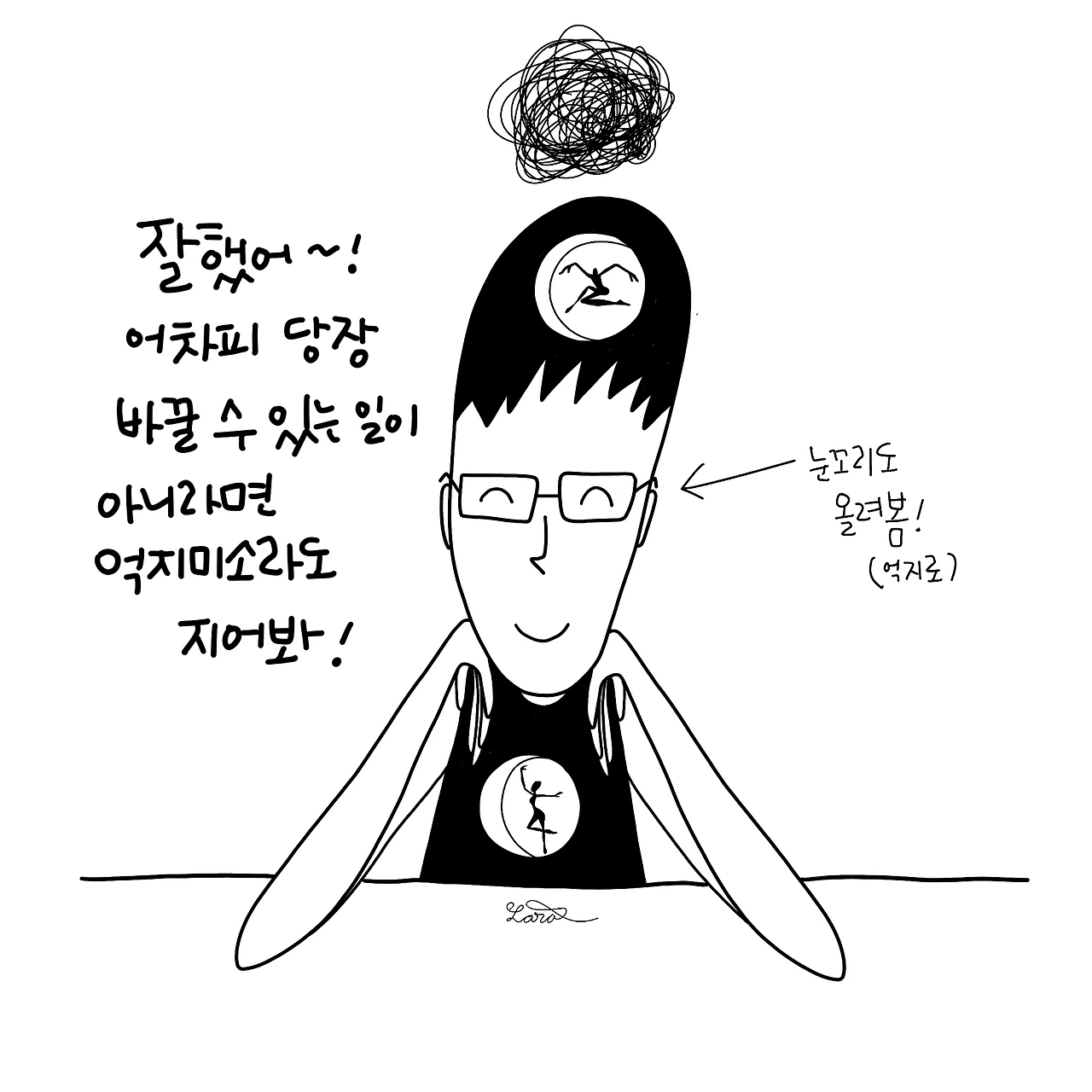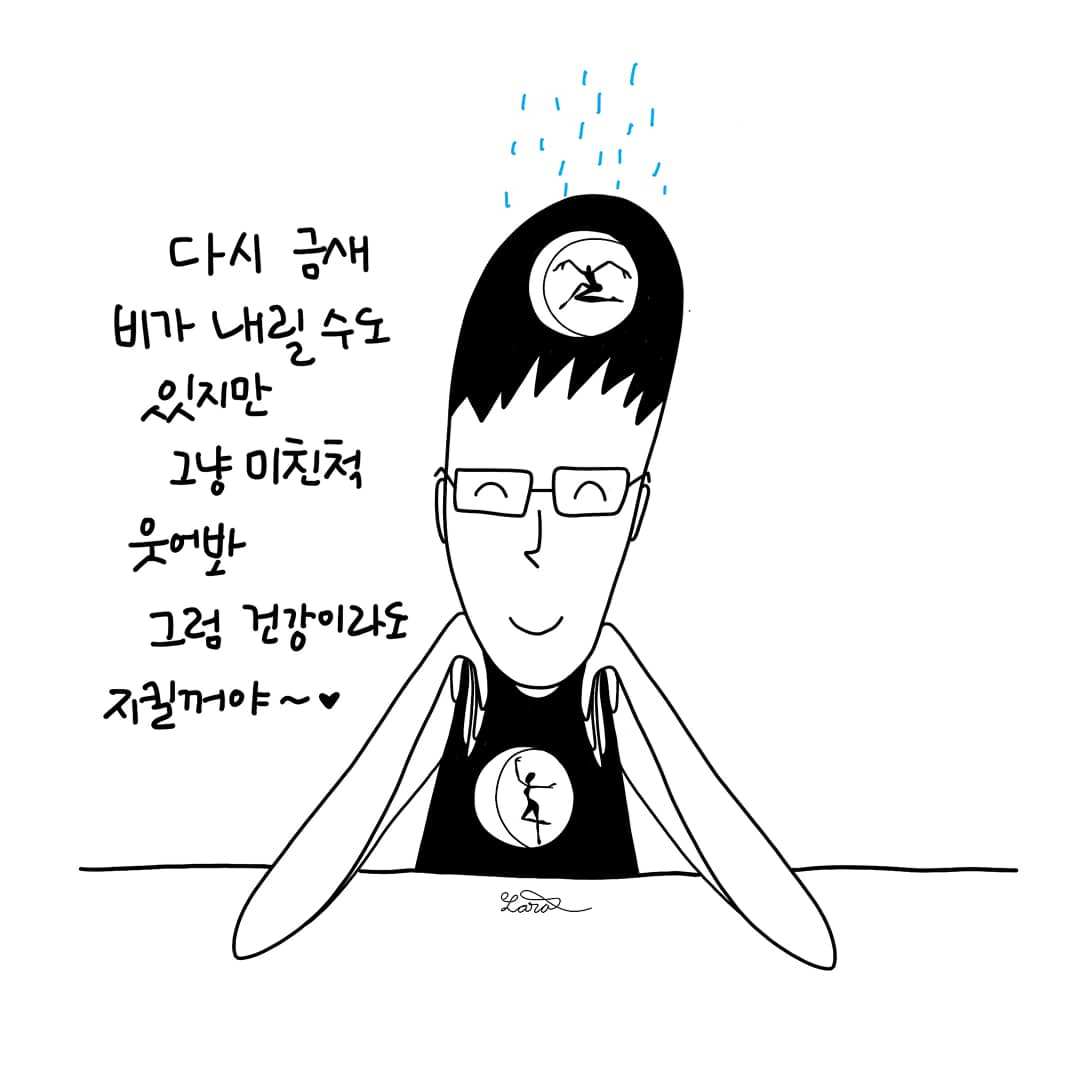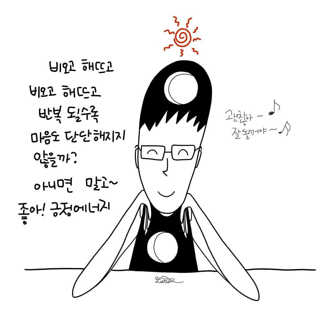 잘하고 있는 건지 뭘 하고 있는 건지! 넌 누구냐!!! 토닥토닥 그래도 입꼬리라도 올려봐 뇌는 단순해서 입꼬리만 올려도 기쁜 줄 착각한대. 어차피 당장 바꿀 수 있는 일이 아니라면 억지 미소라도 지어봐~ 행복해서 웃는 게 아니라 웃으면 행복한 일이 생긴다잖아. 다시 금세 비가 내릴 수도 있지만 그래도 미친 척 웃어봐 그럼 몸이라도 건강하겠지 비 오고 해 뜨고 반복되다 보면 마음도 단단해지지 않을까? 아니면 말고~좋아~긍정 에너지!! 어... 그런데 다시 안 괜찮다. 다시 원점이다. 여태 뭐한거니~@.@ 다시 웃어?
