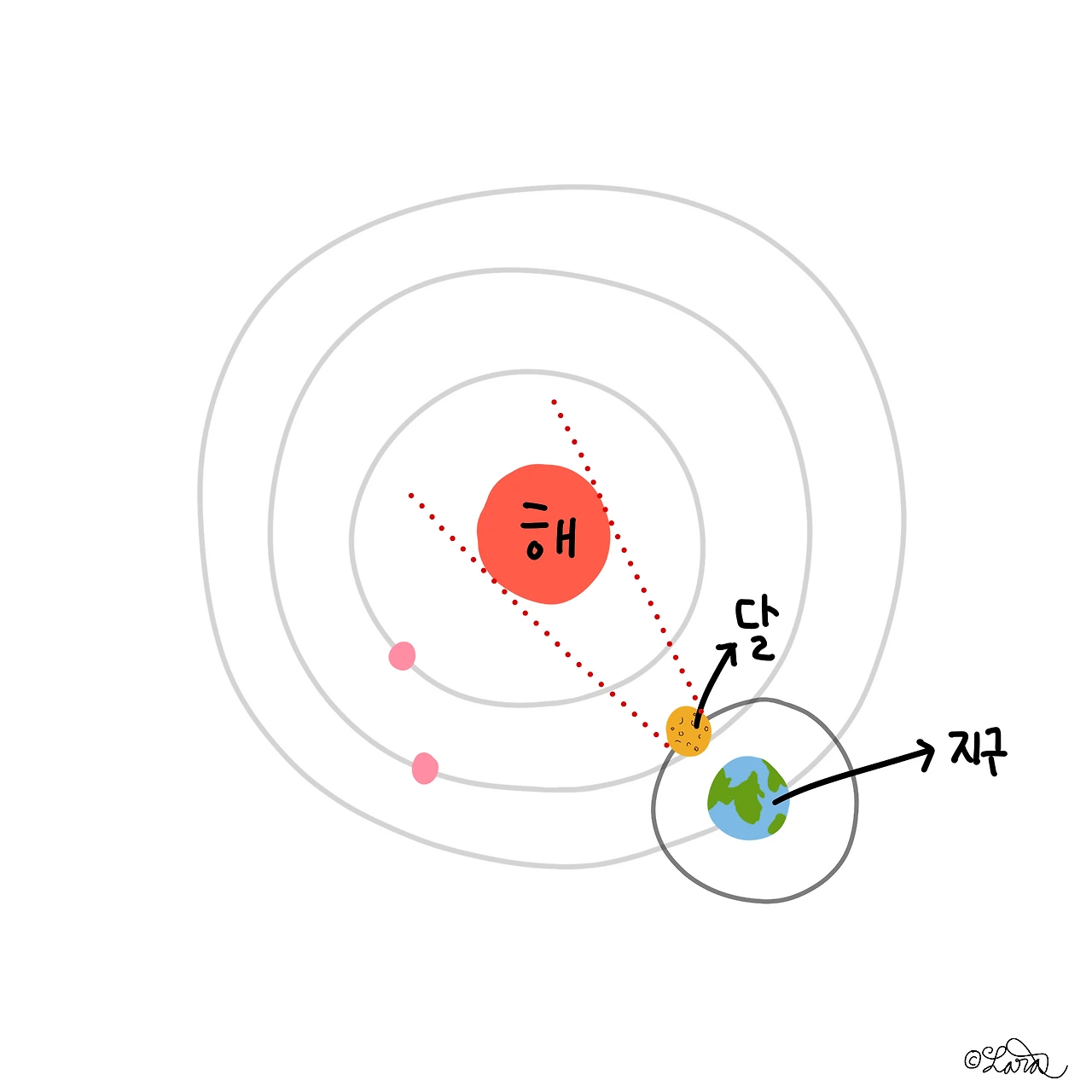 나: 맞아 달이야! 내가 해를 바라보고 있는데 달이 지구 앞에 있으면 해가 가려지지?