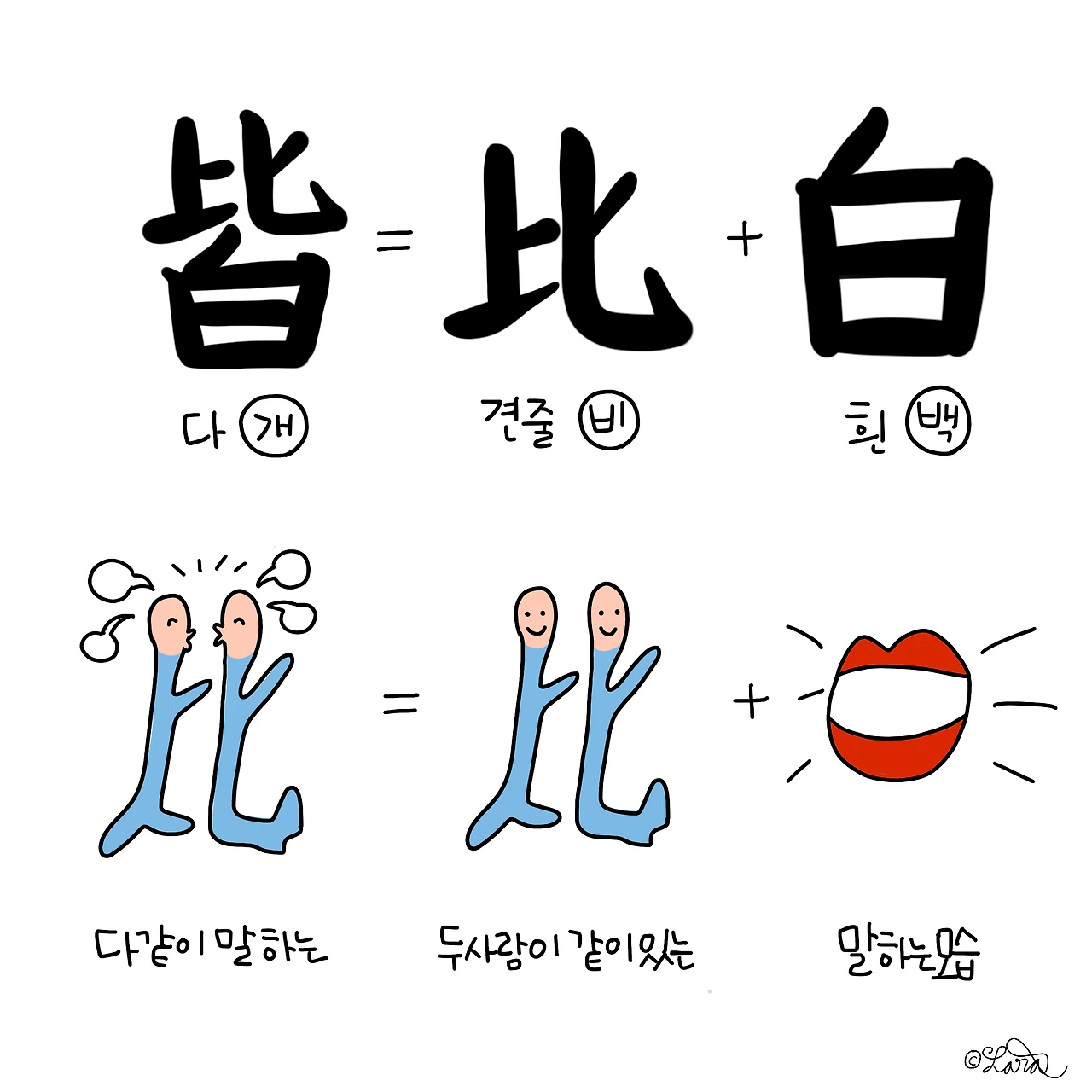 나: 개기(皆旣)의 개(皆)는 '다 개'자로 '모두, 함께, 영향을 미치다'라는 뜻을 가지고 있어. 그리고 기(旣)는 '이미 기'자로 '이미, 없어지다'라는 뜻을 가지고 있지!