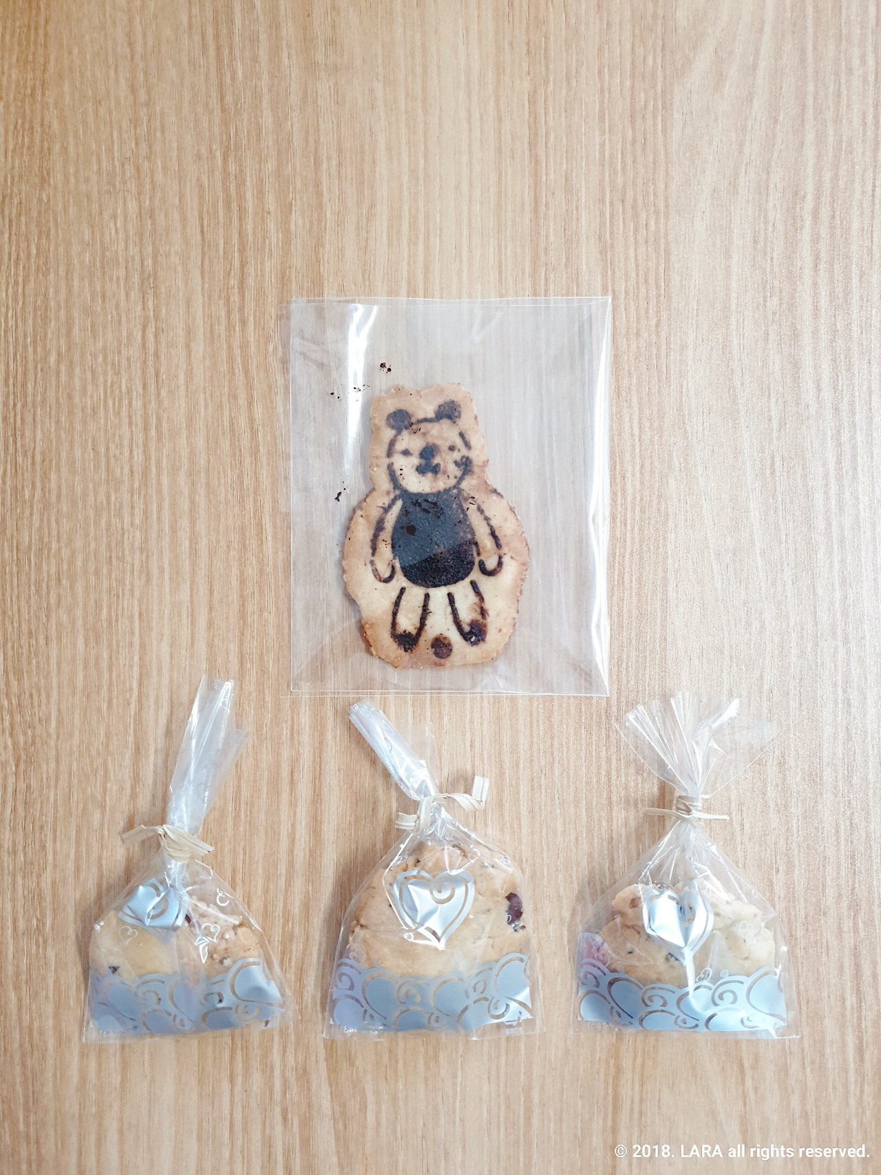 간단하게 포장도 해봤다. 오른쪽 포장은 100% 리라 작품! 피아노 학원 선생님들께 드린다고 열심히 포장을 한다. 본인이 만든 쿠키를 본인이 포장하고 만족감에 기분 업된 상태로 바로 들고 학원으로 갔다는....*^^*