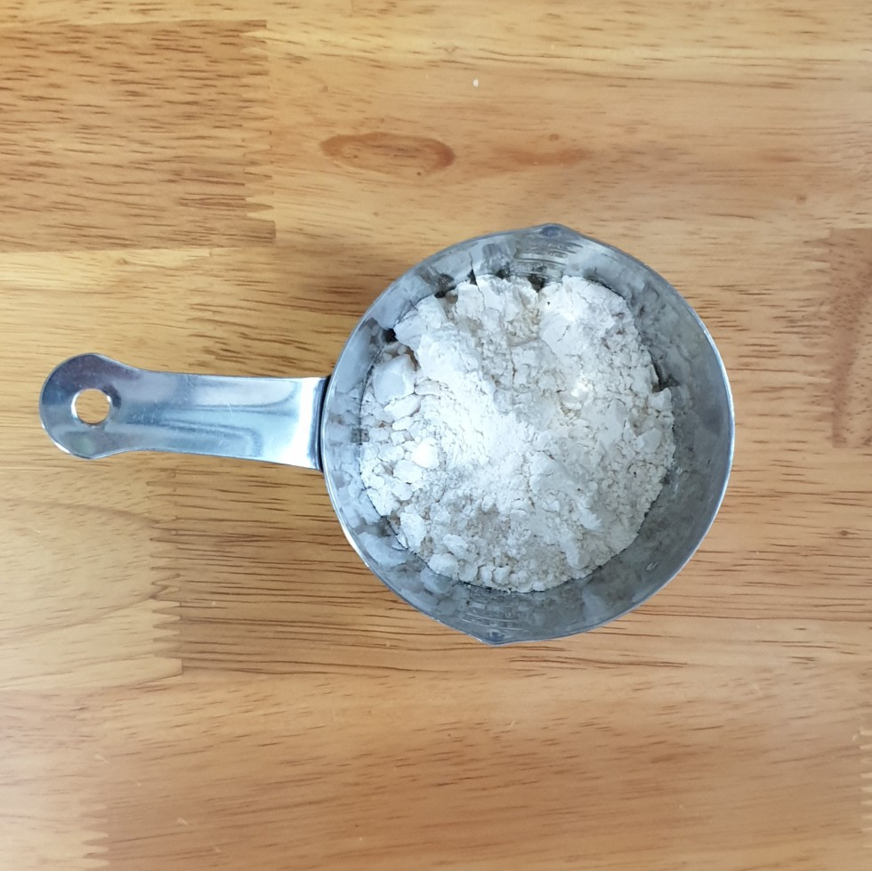 - 건포도는 따뜻한 물에 충분히 불려서 바쳐둔다. - 밀가루는 채쳐둔다
