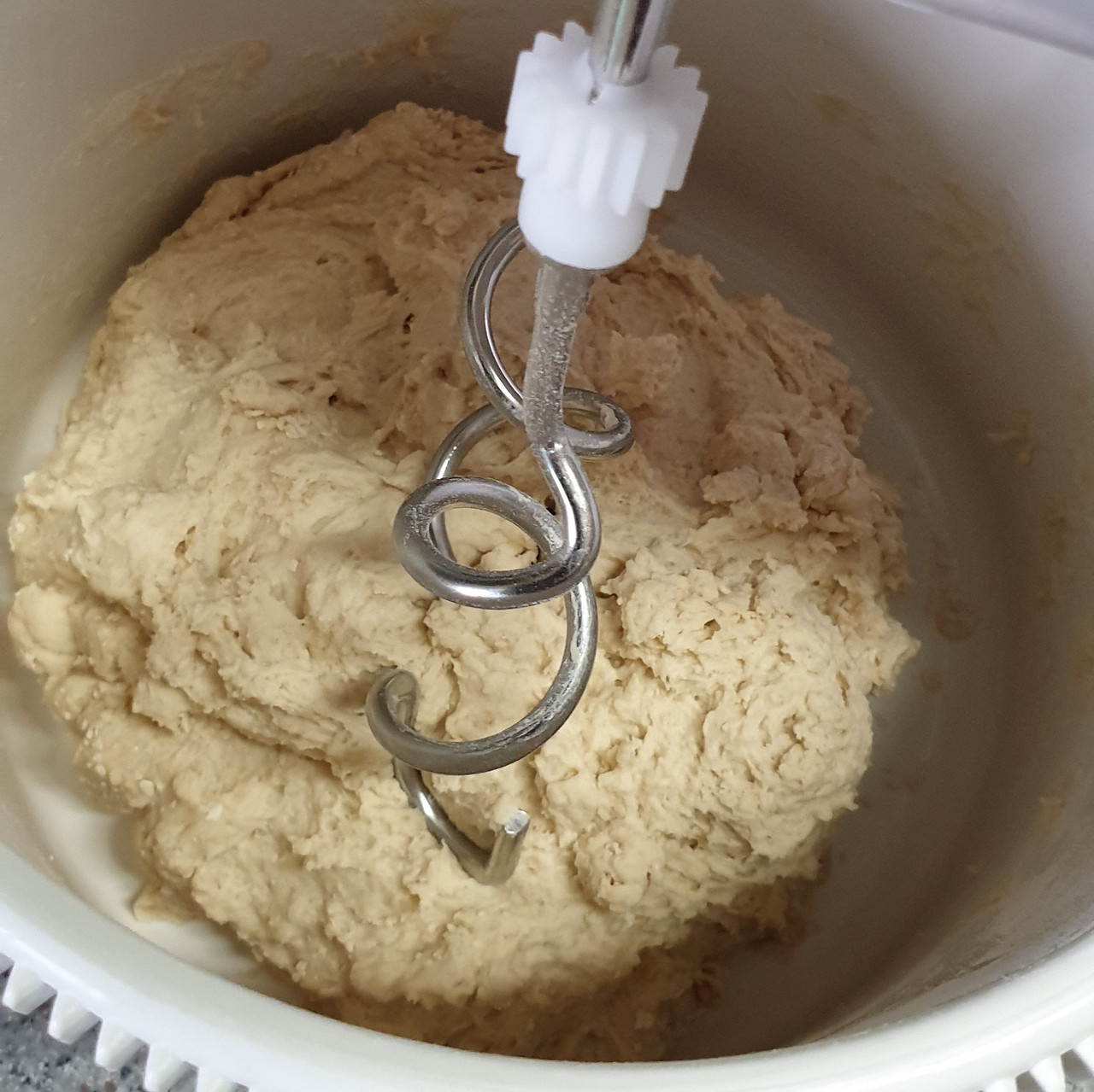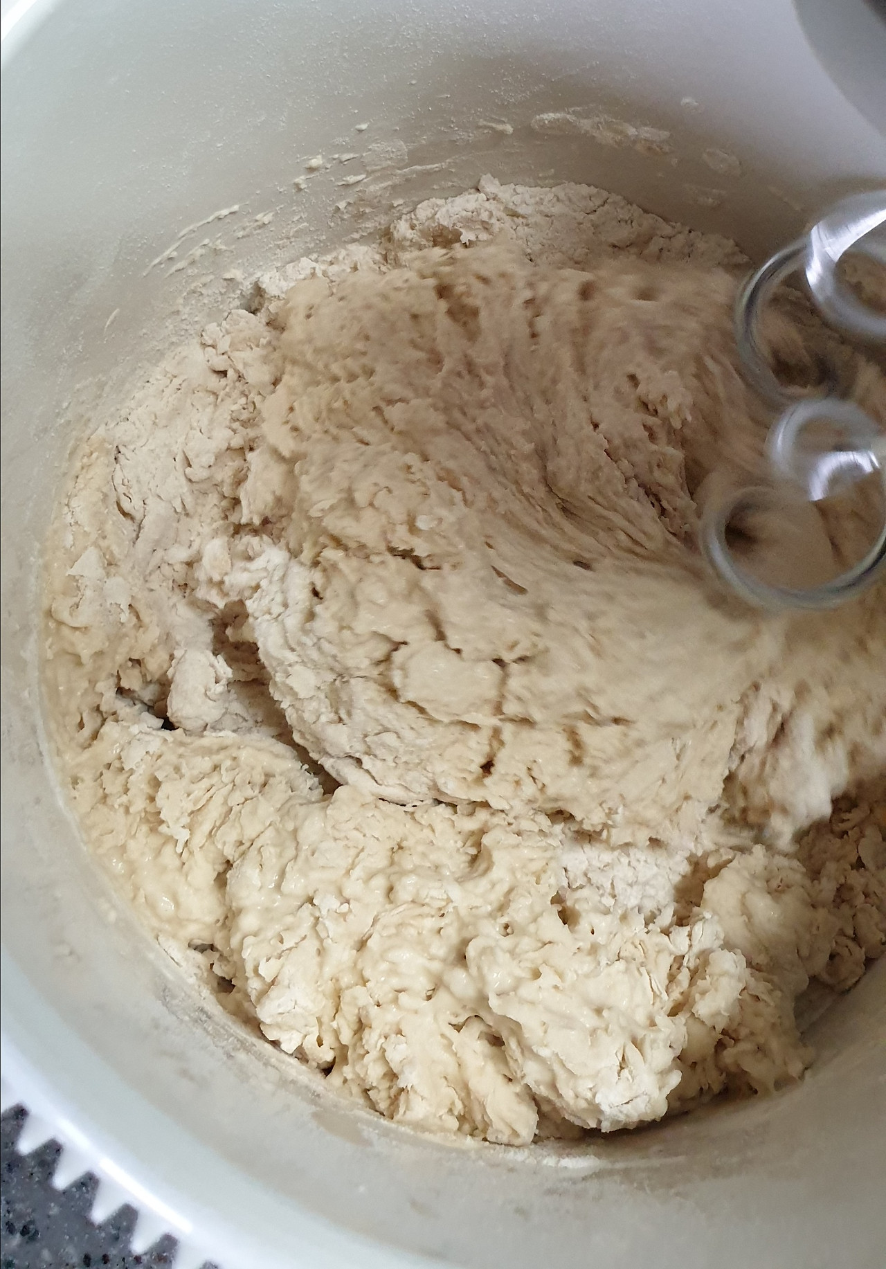 (처음부터 손반죽으로 해도 된다. 반죽기 대신 주걱으로 하면 된다)