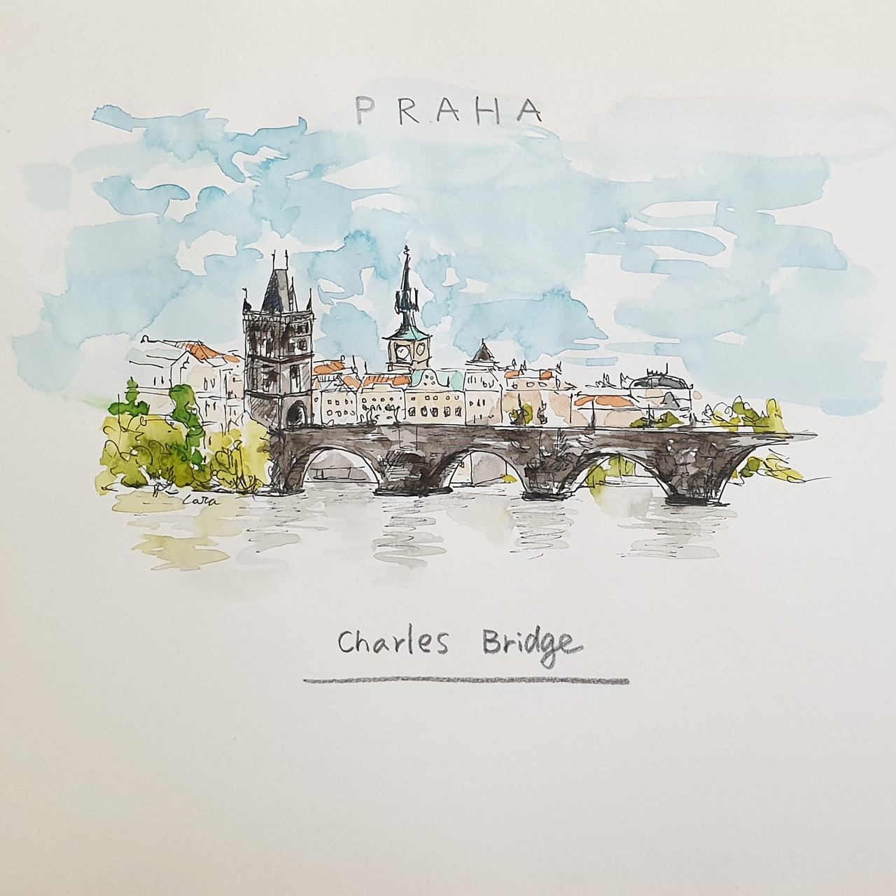 그림으로 다시 동유럽 여행을 떠나본다. 체코! 예전 공산국가였던 이곳은 서유럽과는 느낌이 다르다. 물결모양의 지붕과 원통 모양의 건축물은 확실히 뭔가 남다르다. 동화책에나 나오는 그런 느낌!! 예쁘다.