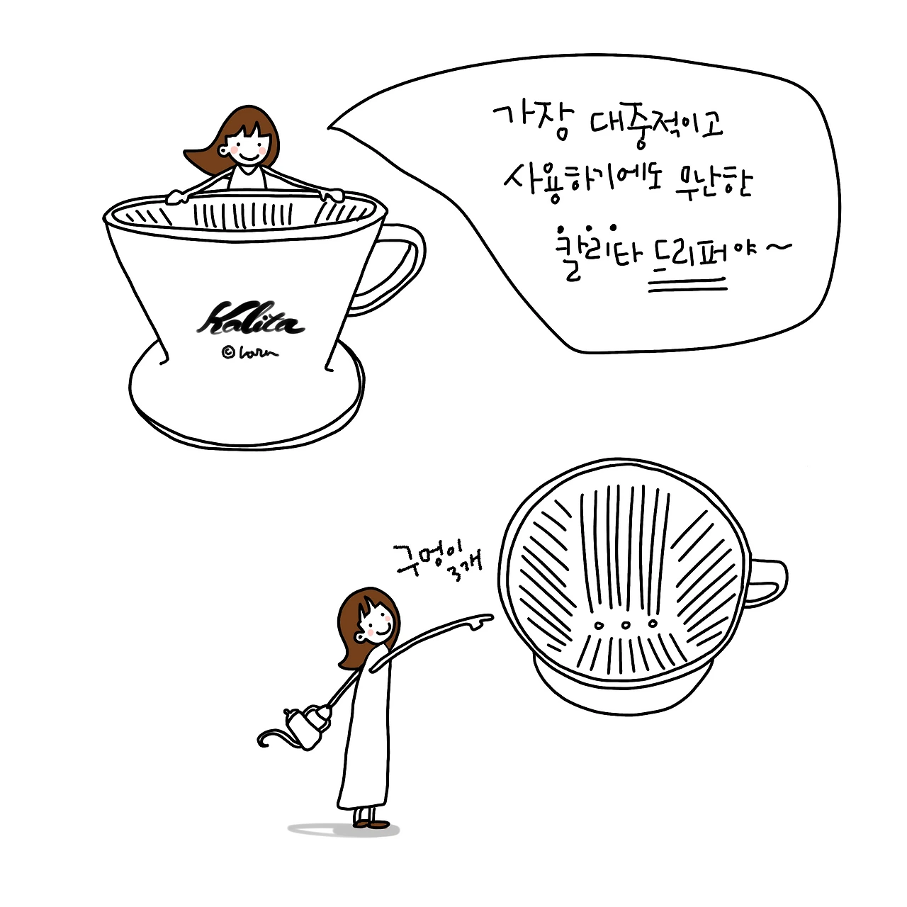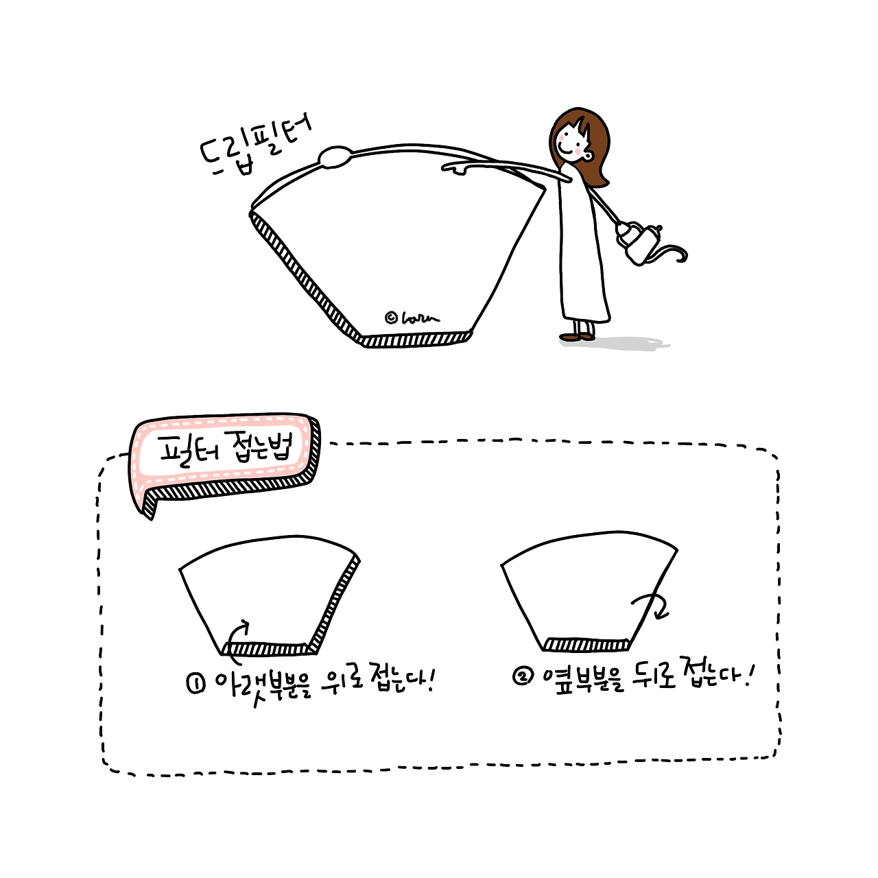 원두커피의 매력에 빠지기 시작하다 보면 하루에 여러 번 마시고 싶다. 그렇다고 매번 커피숍을 가기엔 조금 부담스럽다면 아주 가볍게 드립퍼와 드립필터만 구입해서 시작해봐도 좋다. 필터를 장착한 드리퍼에 커피를 넣고 머그컵 위에 올려놓고 주전자로 4번에 걸쳐 내리면 끝!