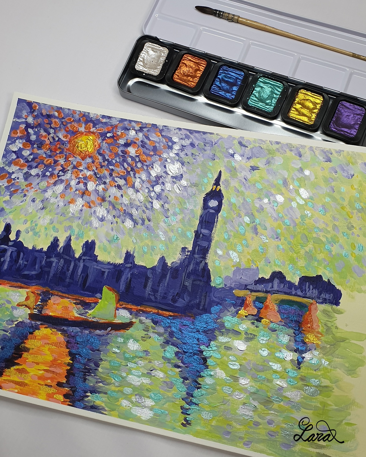 앙드레 드랭의 <빅벤>을 보고 감명받아 그려봄. <아크릴, 23cmx33>