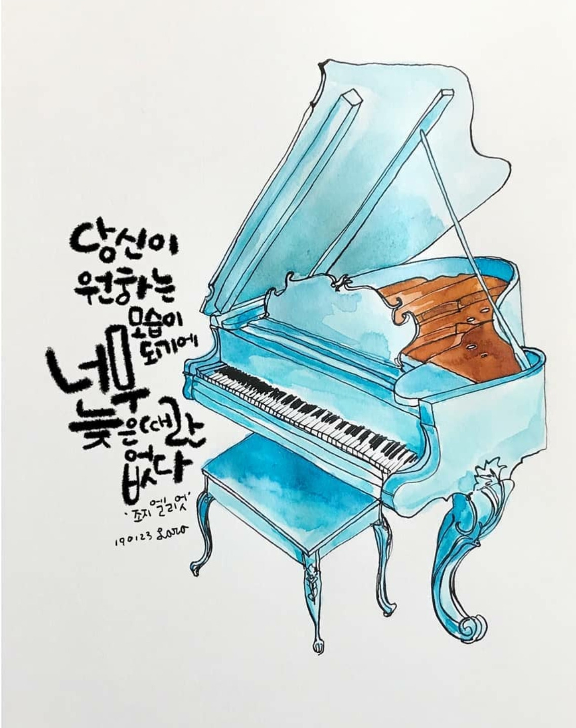 수채물감,라이너,디지털캘리 <당신이 원하는 모습이되기에 너무 늦은 때란 없다>