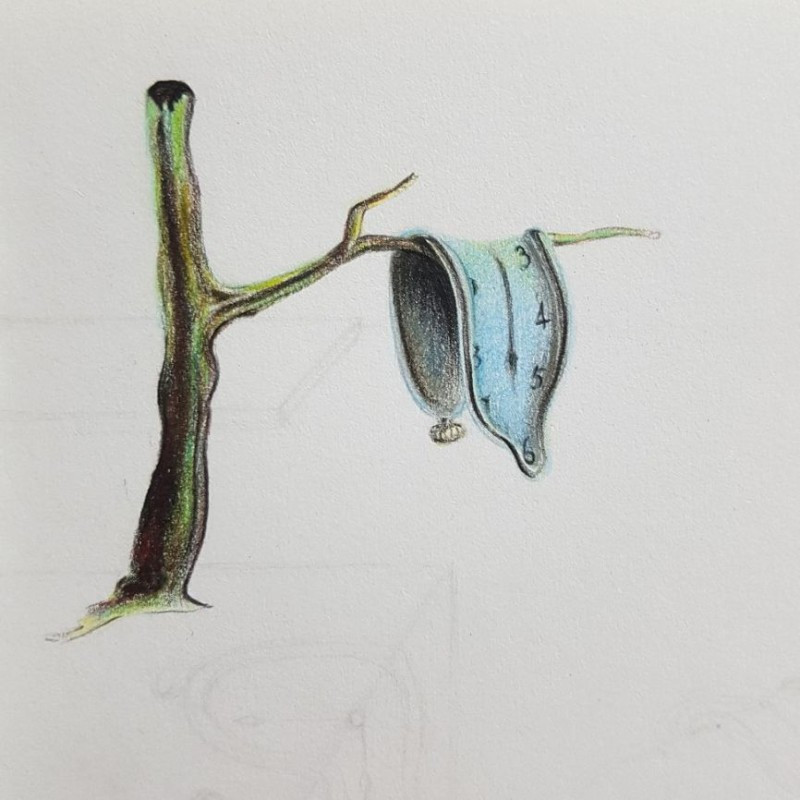 색연필 드로잉 ; 살바도르 달리의 그림으로 드로잉연습을 하다가 미완성으로 멈춘 작품