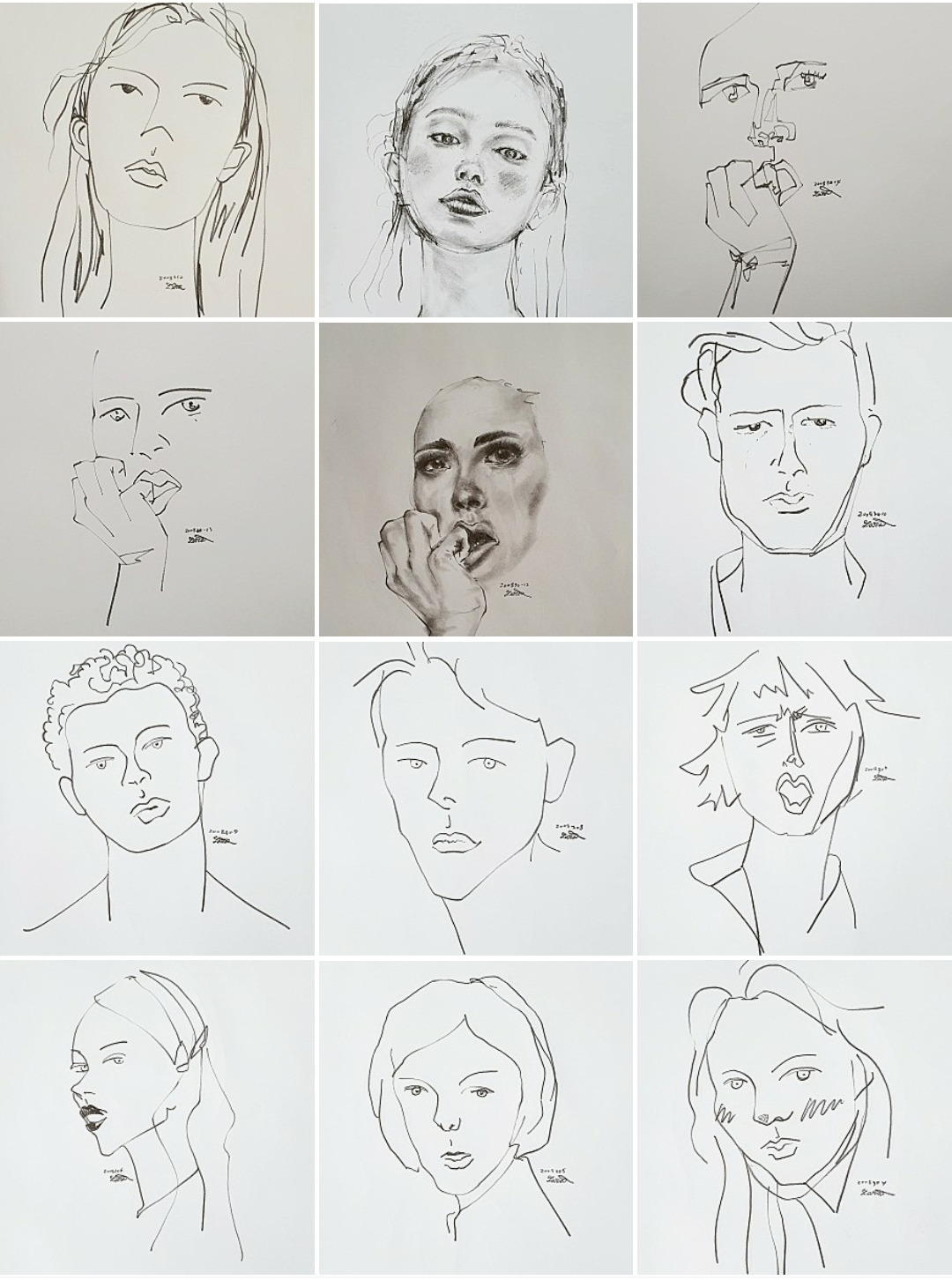 가벼운 연필선으로 얼굴 표정 느낌 표현하는