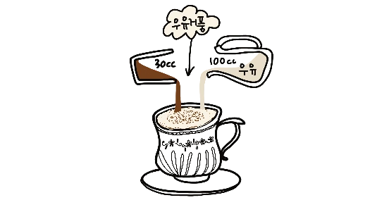 에스프레소 30cc + 우유 100cc + 우유 거품