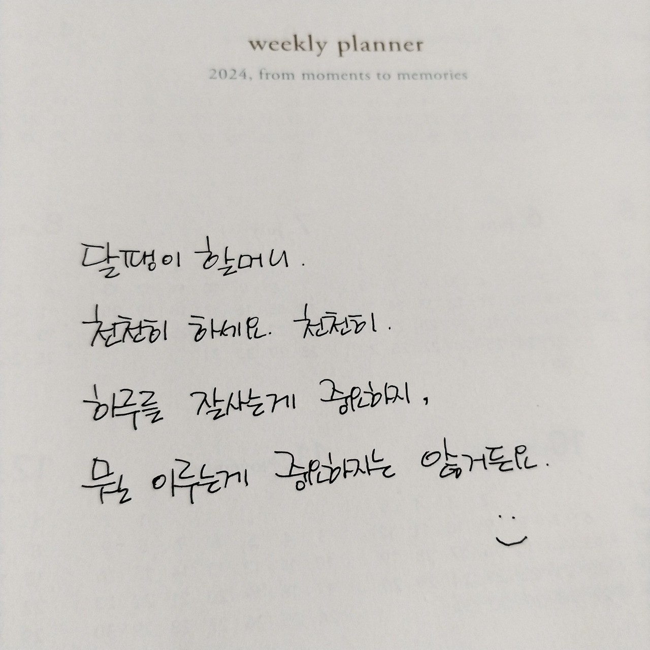 나는. 생각보다. 정~~~~~~~~~~~~~~말 느리게 움직여야 하는 사람이었다.