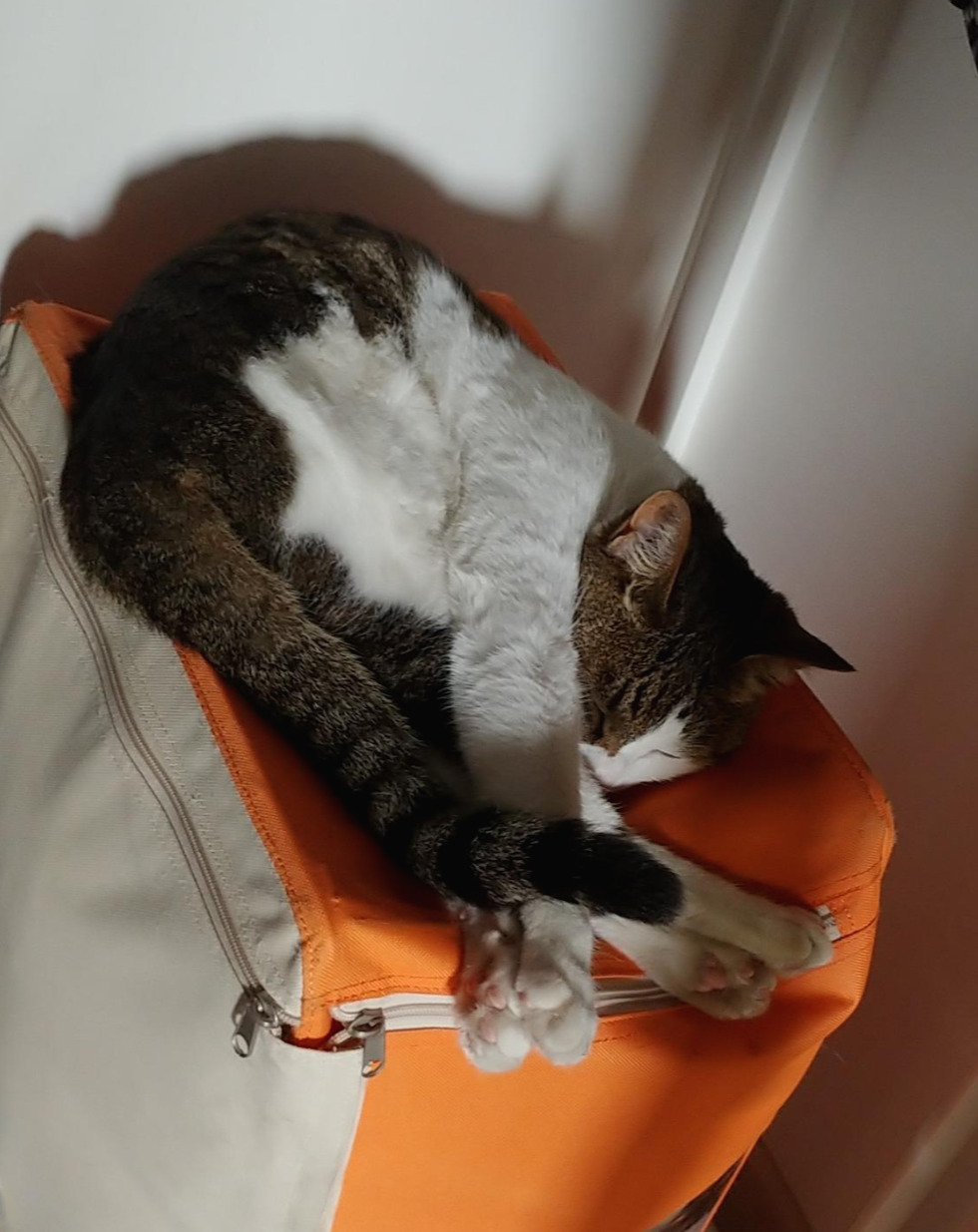 그리고 강이 옆 아니어도 난 갈 데가 많아. 강이는 자기가 좋아하는 자리가 있어. 편하고 안정적으로 쉬는 데를 좋아한단 말야. 근데 나는 여기저기 다 좋아해! 여기 꾸겨져 있고, 저기 꾸겨져 있고... 생각도 못한 자리에 가 있으면 엄마가 되게 좋아하잖아. 엄마가 엄청 좋아하면 내가 쪼끔 뿌듯해지지. ^^