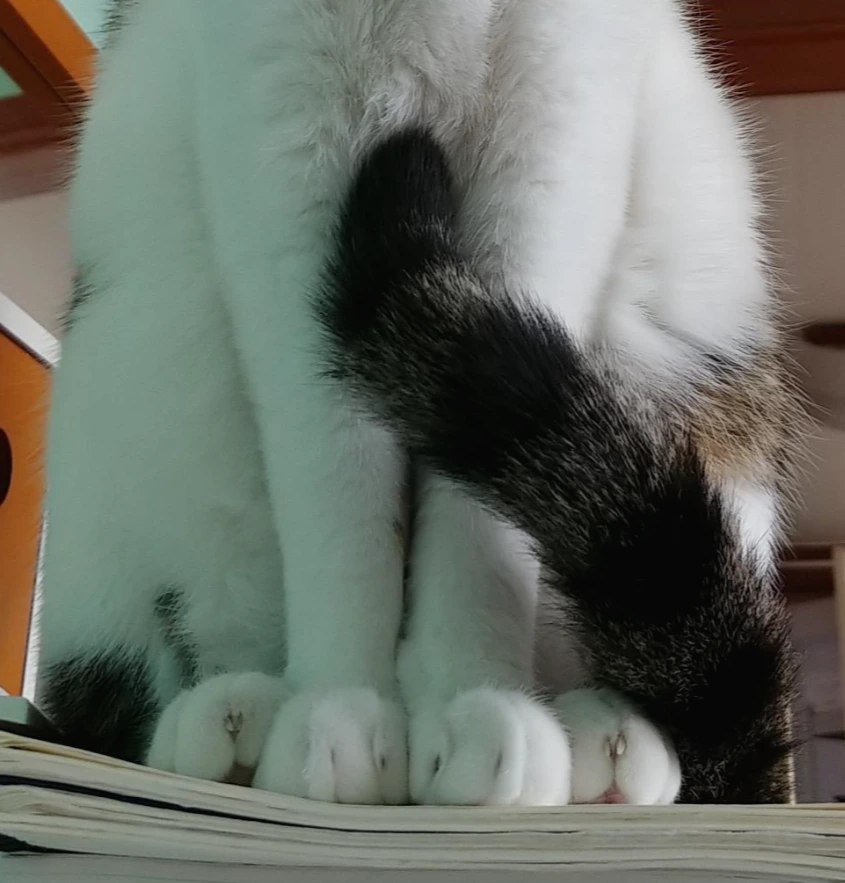 그리고 앉아서 꼬리로 발을 감싸고 있잖아? 내가 꼬리가 엄청 예쁘거든. 아까 말했잖아. 내 꼬리가 특히 살랑~ 살랑~ 한다고. 내가 앞발도 엄청 귀여워. 그래서 내가 앞발을 잘 모으고 있는단말야.