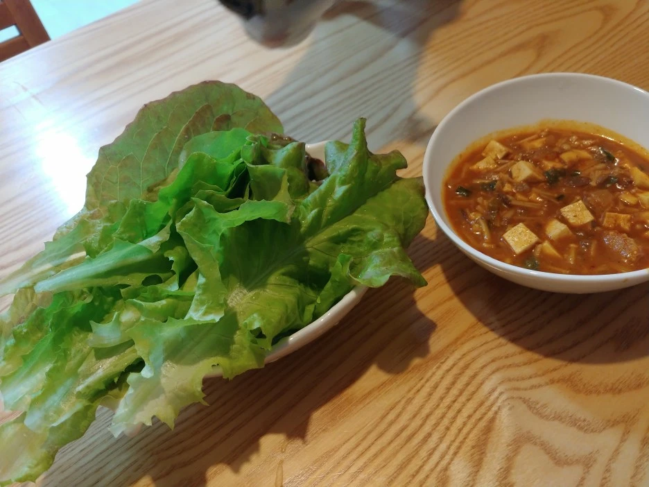 신선하고 부드럽고 향기로운 상추에 바글바글 끓인 강된장을 얹어 뚝딱 밥을 먹는 것.