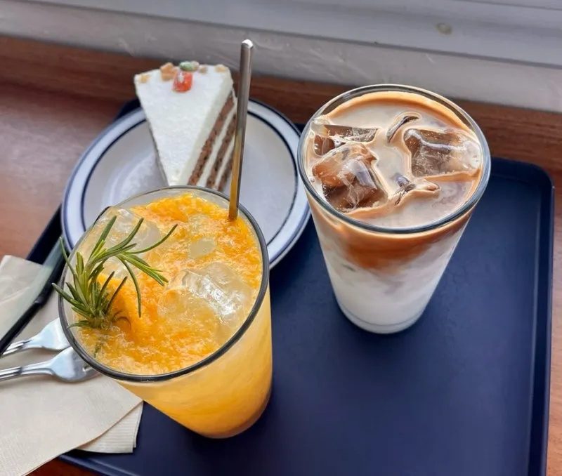 아이스 라떼와 당근케익, 한라봉에이드를 시켰다.