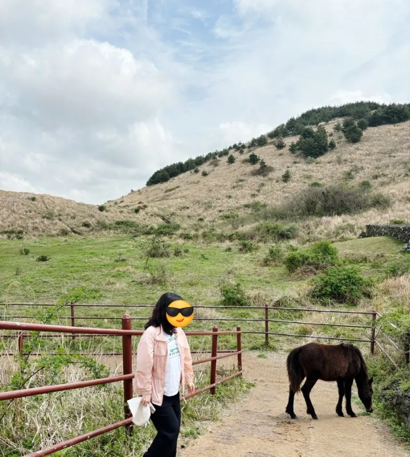 사진기를 들이대면 보통 뚝딱거리지만 제주의 하늘 아래서라면 조금은 자연스러울 수 있다. 4월 중순인데 반팔 입어도 땀이 날 만큼 더웠다. 용눈이오름 금방 다시 만나서 반가웠어~ 이제 카페인 수혈하러 가자.