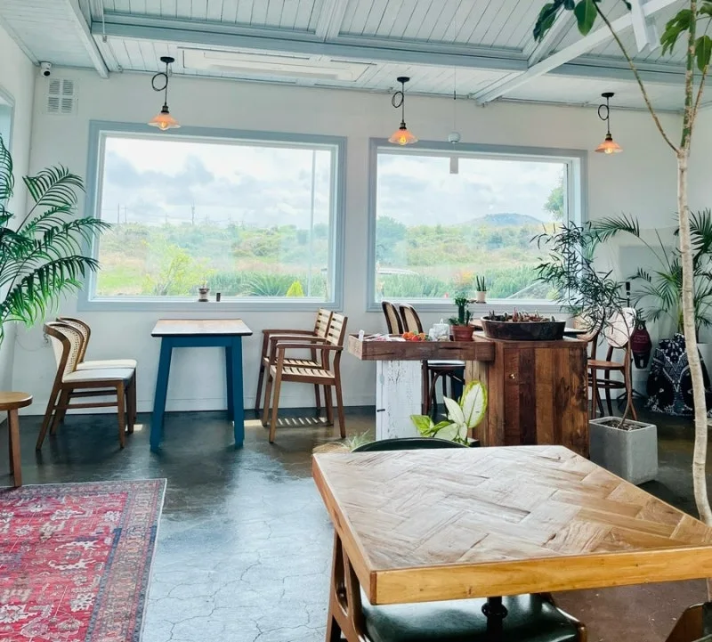 창밖으로 보이는 밭이 아름다운 카페 편린에 왔다.