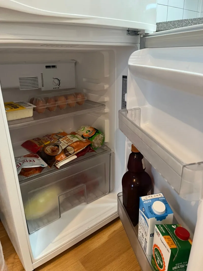 마트에서 계란과 두부, 즉석 우동과 알배추, 토마토 등을 사서 냉장고에 넣어두었다.