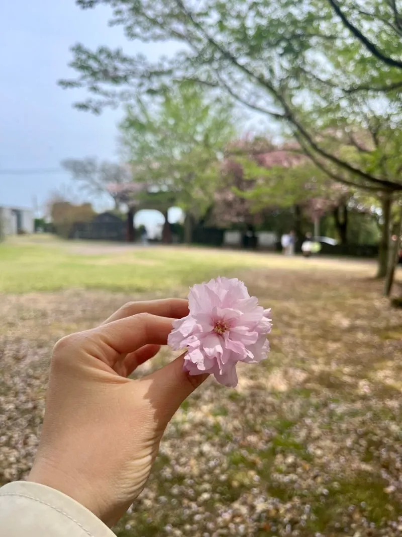 꽃송이째로 똑 떨어져 있는 겹벚꽃 집어 꽃반지 해보고 머리 옆에 꽂아 사진 찍어본다. 금방 배가 고파져 근처 식당을 검색해 점심 먹으러 갔다.