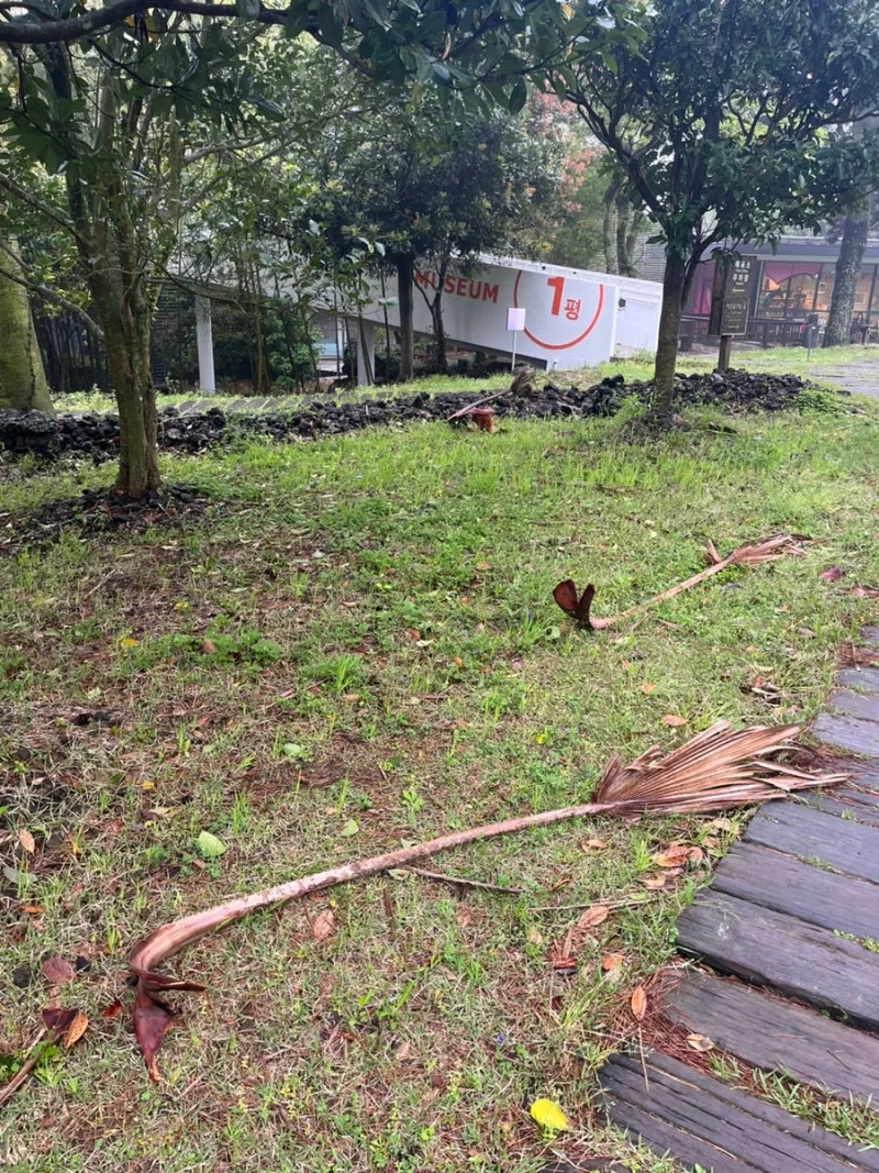 빗자루 같지만 바람에 떨어져 시든 야자수 잎이다.