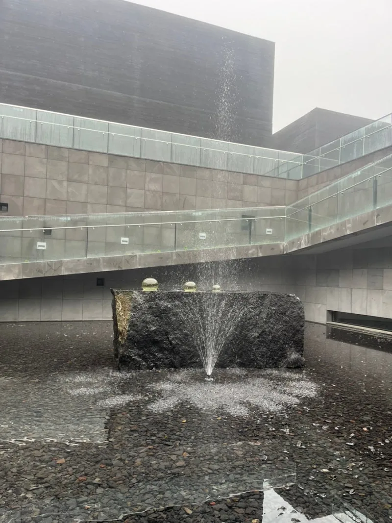 신문지나 드로잉 작품 위에 물방울을 그려낸 작품부터, 분수와 물방울이 어우러진 설치 작품 ‘삼신’까지. 삼신의 분수는 10분마다 나온다. 이미 내려 고여 있는 빗물과 원래 작품을 구성하던 물, 지금 떨어지는 빗방울과 10분마다 새롭게 뿜어내는 분수에서 떨어지는 물들이 모두 <삼신>의 구성요소가 된다. 나를 폭우와 안개라는 극한의 운전 상황으로 몰아붙인건 김창열미술관 공간의 특성을 극대화하기 위한 것인가? 여행하다 보면 절로 드는 자뻑 같은 운명론이다.
