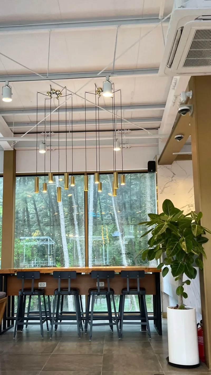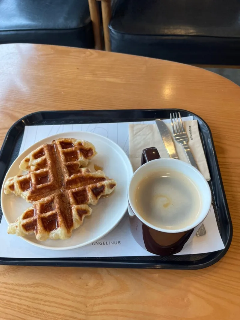 한라수목원 주차장 옆 엔제리너스 카페에서 크로플과 따뜻한 아메리카노 마시며 잠깐 쉬어준다. 창밖 수목원 나무들이 푸르다.