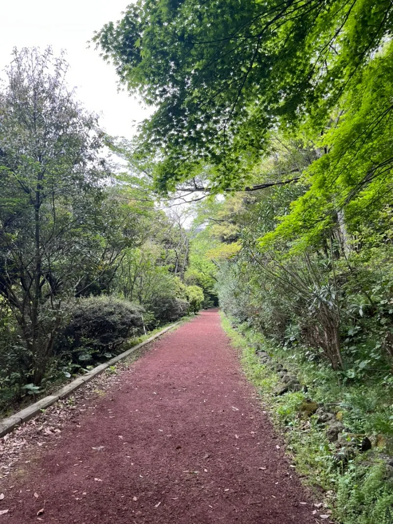 한라수목원에 가득 핀 노란 메리골드와 여전히 반가운 빨간 길을 지나 산림욕장으로 들어간다. 안개 헤치고 괭이오름 정상에 올랐던 이틀 전에는 아무것도 식별할 수 없었는데 오늘은 상황이 좀 나으려나?