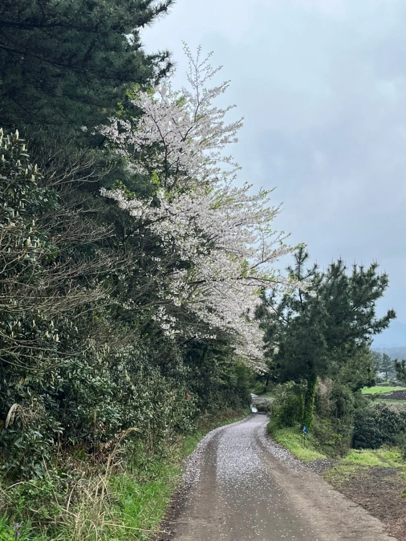 지미봉 둘레길의 벚꽃을 뒤로 하고 정상으로 향하는 오르막을 올라보자.