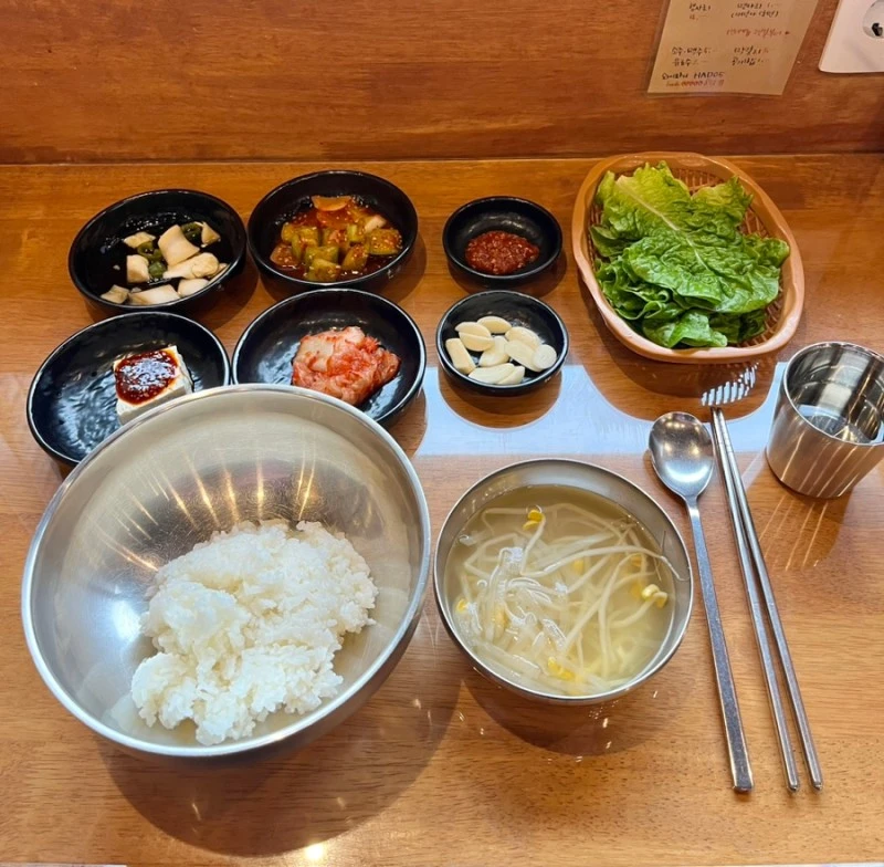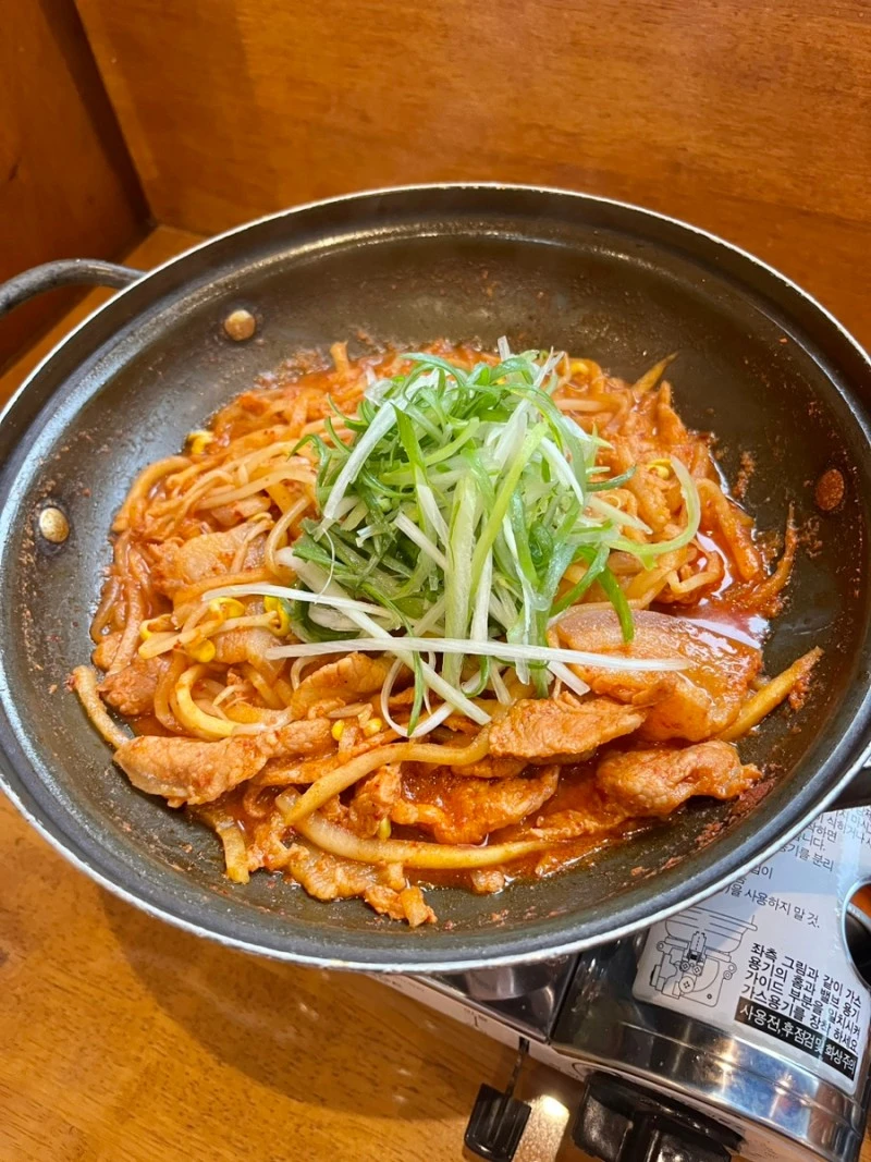 숙소 들어가기 전에 제대로 된 저녁을 먹어야겠다. 흑돼지 두루치기 혼밥이 가능한 식당에서 싹싹 비벼 먹었다. 콩나물국에 무가 숭덩숭덩 제법 들어있어 시원했다.