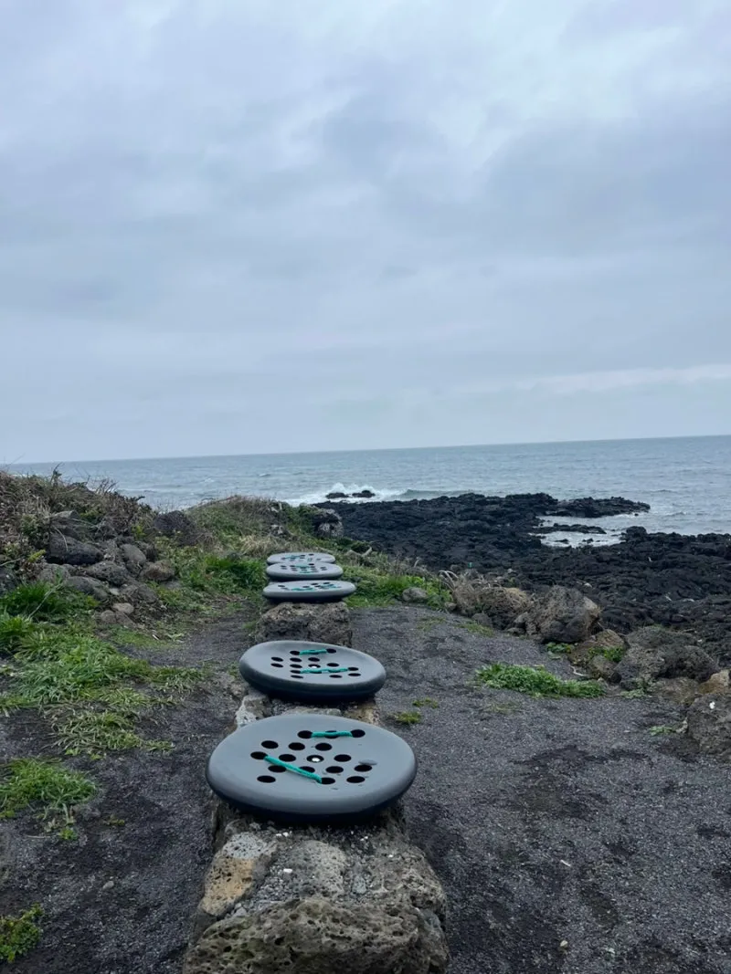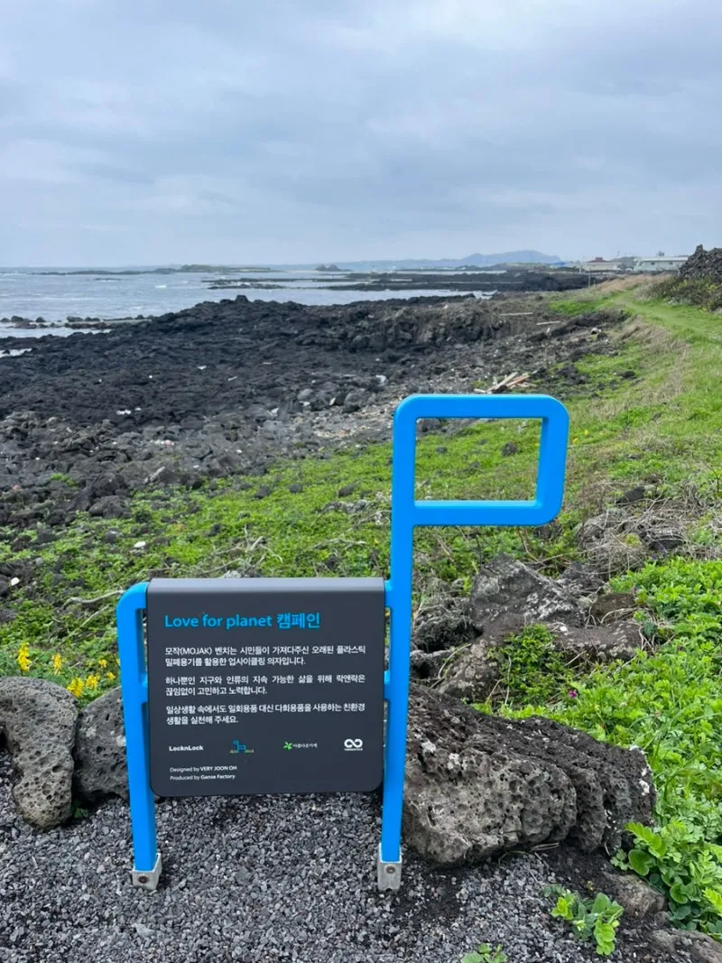 오래된 플라스틱 밀폐용기를 활용한 벤치에 잠시 앉아쉬며 생각했다.