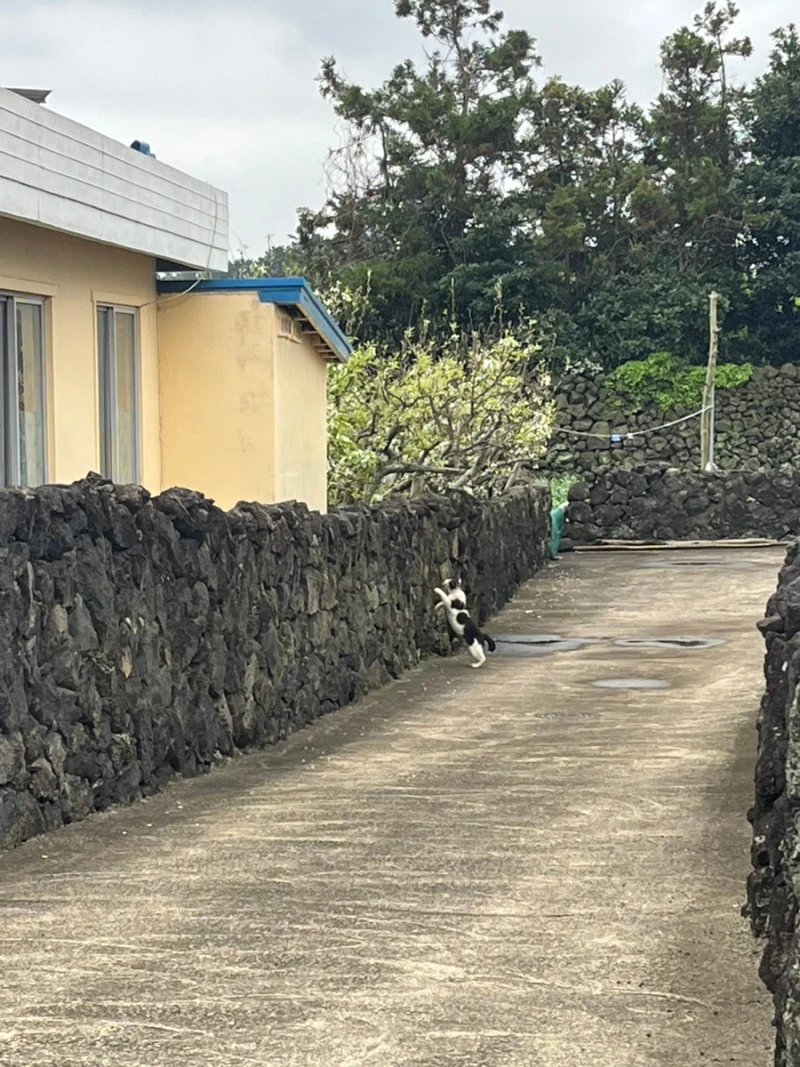 뽀짝, 담 위로 뛰는 고양이 찍어주고