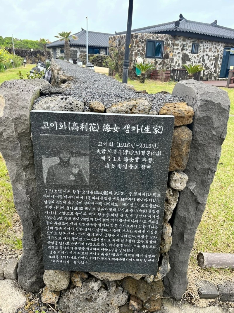 제주 최고령 해녀로 활동한 고이화님 생가다. 남달리 몸집이 크고 숨이 길어서 어린 나이에도 ‘애기상군’으로 불리고 항일운동에 적극 참여했다. 기개가 대단하시다.