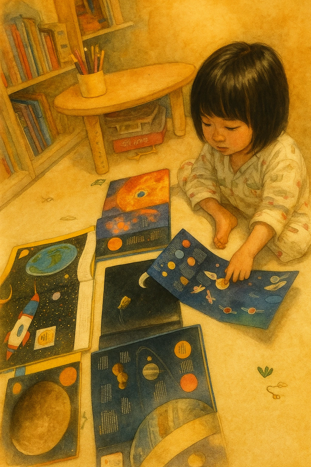 우주관련 책들을 한번에 모아 펼쳐준다면, 그 모습은 굉장히 멋진 우주자료처럼 보이게 됩니다. 이야기 한것처럼 한장에 행성 하나씩 사진자료가 정리된것이 보통의 경우기 때문에 책들을 모아 펼쳐 놓으며 마치 은하수 처럼 보이기도 합니다.