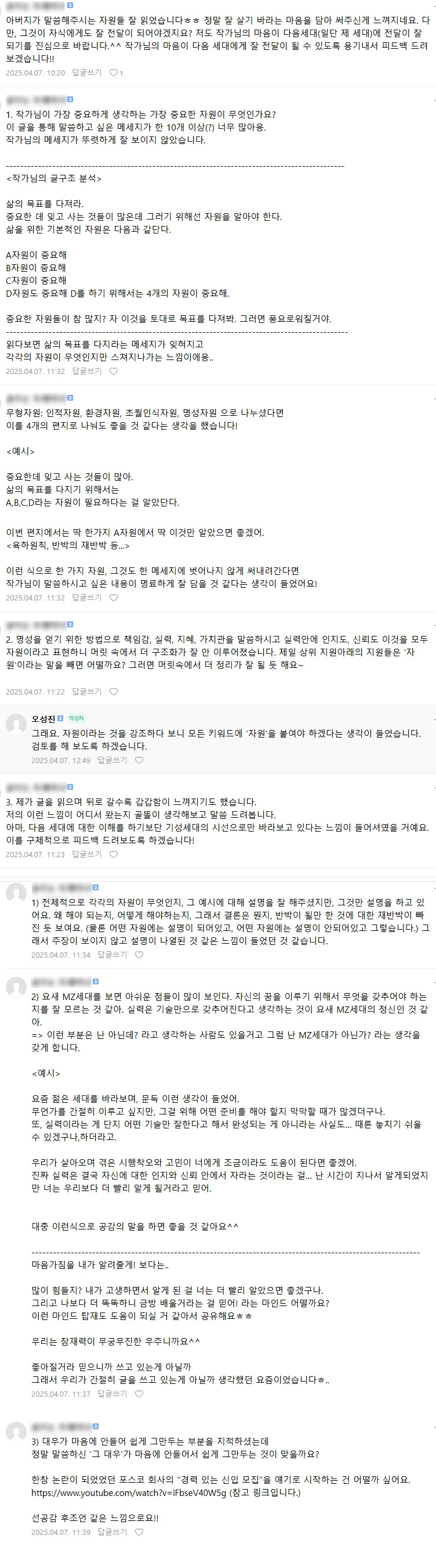 그러나 나에게는 그 코멘트들이 얼마나 반갑고 고마웠는지 모릅니다. 내가 깨닫지 못하고 있는 부분들을 알려 주는 글이기 때문이었죠.