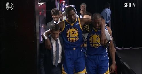 - 이 장면을 마지막으로 케빈 듀란트는 코트를 떠난다. 경기 후 인터뷰에서 듀란트가 아킬레스 건 부상을 당했다고 말하는 밥 마이어스 단장은 당장이라도 울음을 터뜨릴 것만 같았다. 2차전에서 햄스트링 부상을 당한 클레이 탐슨이 3차전 출장을 강력히 요구했을 때 구단은 절대 불가를 선언했다. 탐슨보다 훨씬 더 심각한 부상을 안고 있었던 듀란트였기에 팀이 엘리미네이션에 몰리지 않았다면 절대 경기에 나오지 않았을 것이다. 4차전이 끝난 후 대부분의 사람들은 듀란트가 없는 골스의 우승은 힘들 거라고 예측했다.