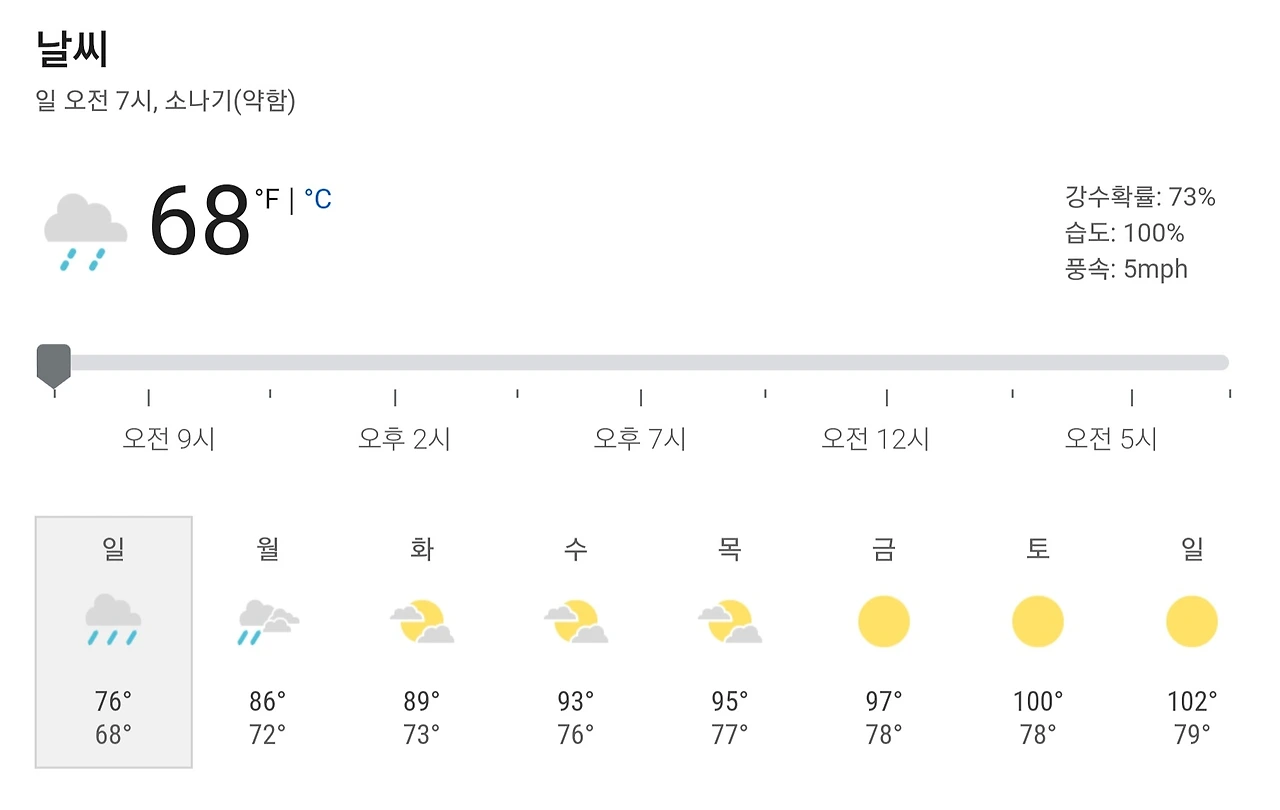 8월에 한낮 기온이 76°F???