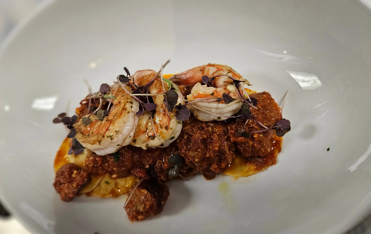 * Mushroom Shrimp Ravioli - Truffle Mushroom Ravioli/ Sauteed Shrimp/ Bolognaise Sauce