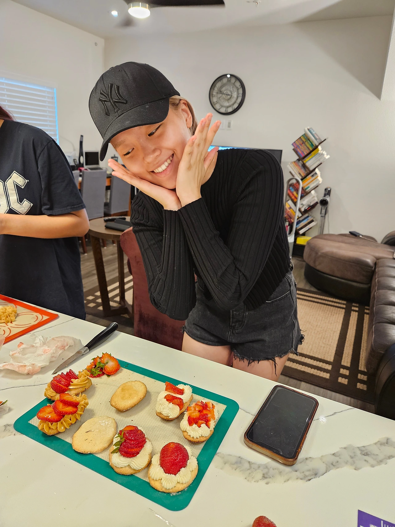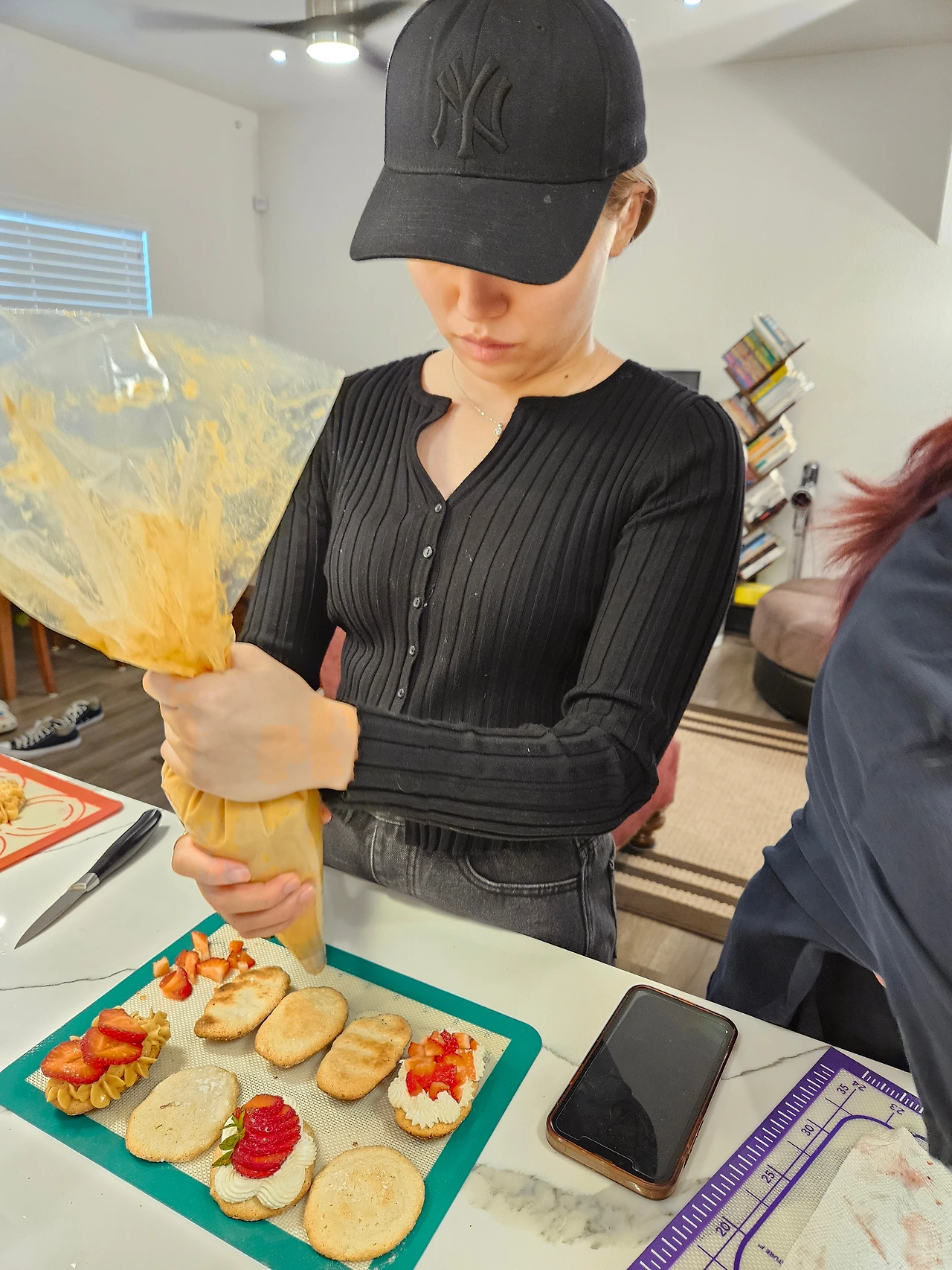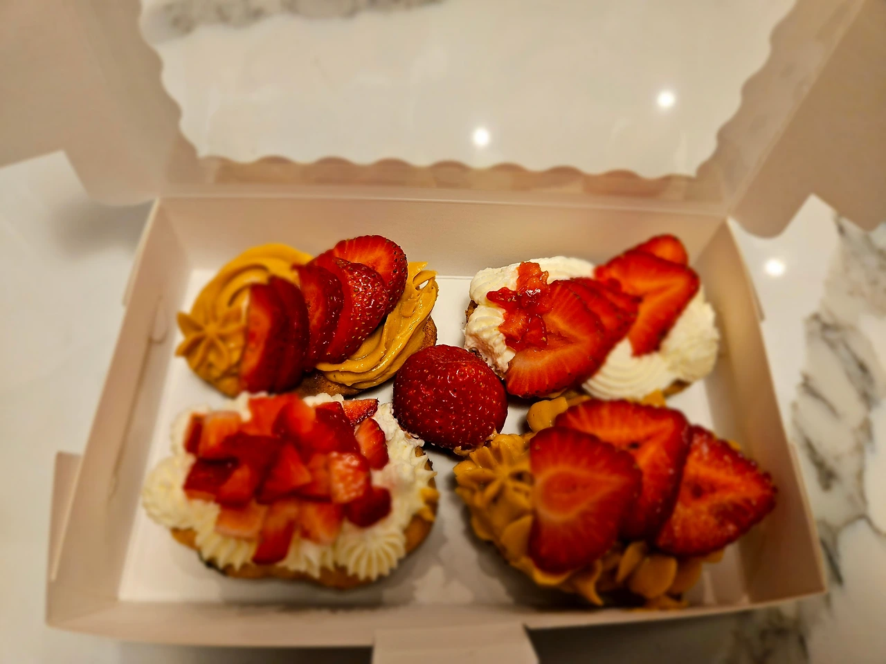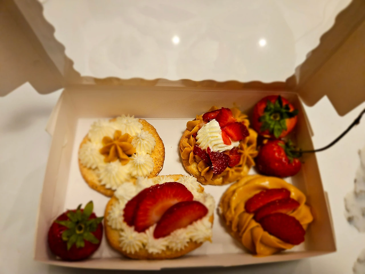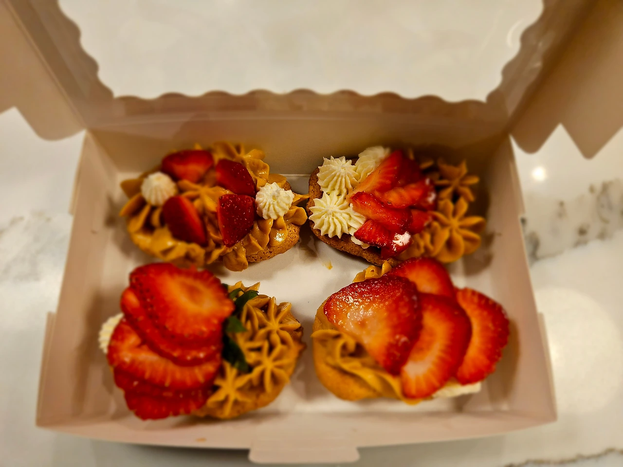 마카롱처럼 두 개를 겹쳐서 안에 필링을 넣는 게 정통적인 방법이지만, 타르트처럼 크림 올리고 장식하기로! 캐러멜버터크림과 크림치즈 크림 두 가지 만들어서 딸기와 함께 데코. 다음 주에 내가 골프클럽 데크오븐에서 구운 다쿠아즈와 비교해 보기로 했다. 갖고 싶다 데크오븐!