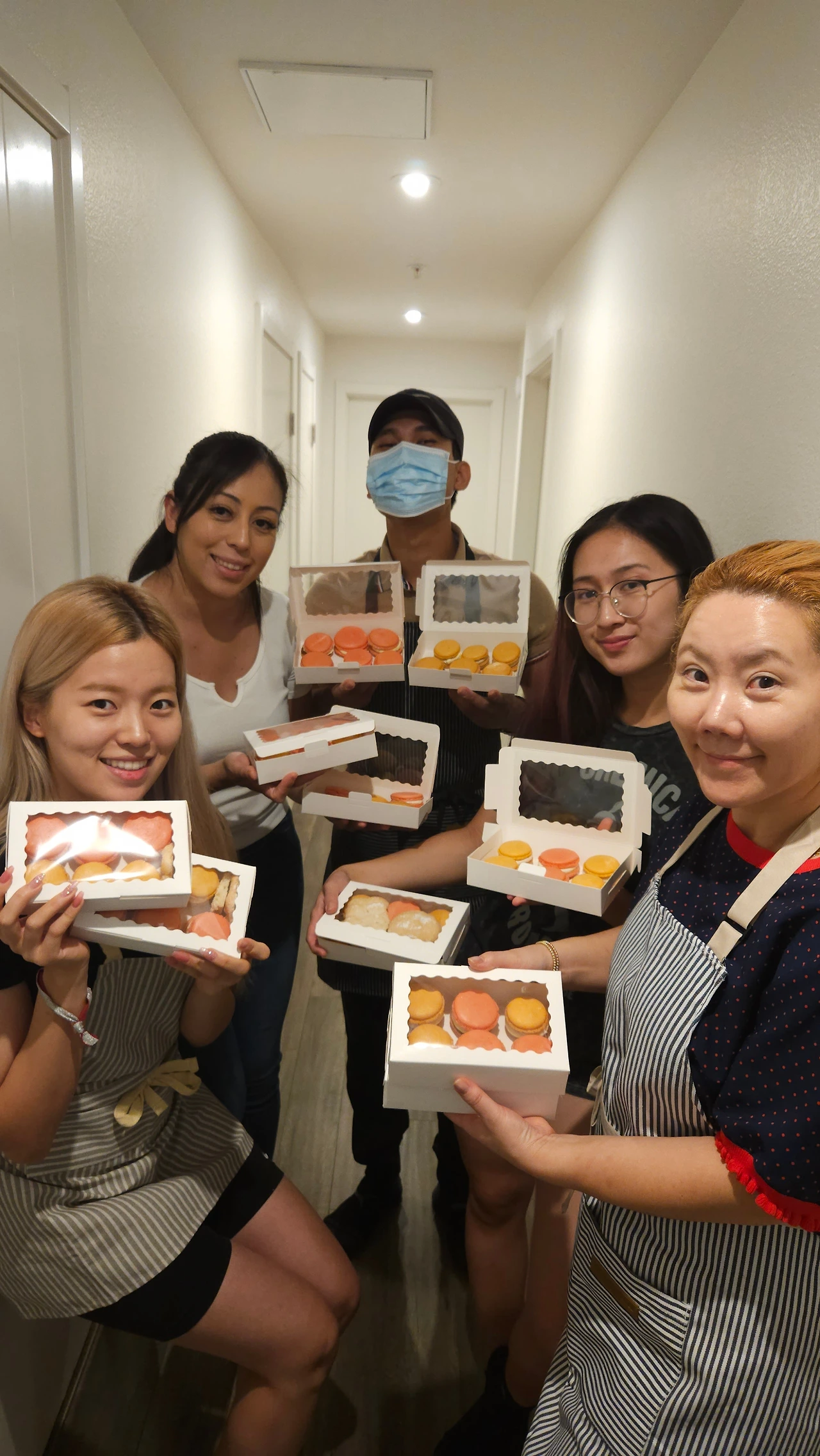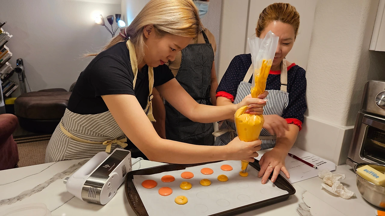 오늘은 복도에서 사진을 찍어보기로! 처음 마카롱을 만들어 보는데 꼬끄도 잘 나오고 필링도 잘 만들어져서 모두가 꺅!!! 소리 지르면서 만들었던 시간! 다음 주엔 소시지빵, 단팥빵, 슈크림빵을 만들어 보아요!