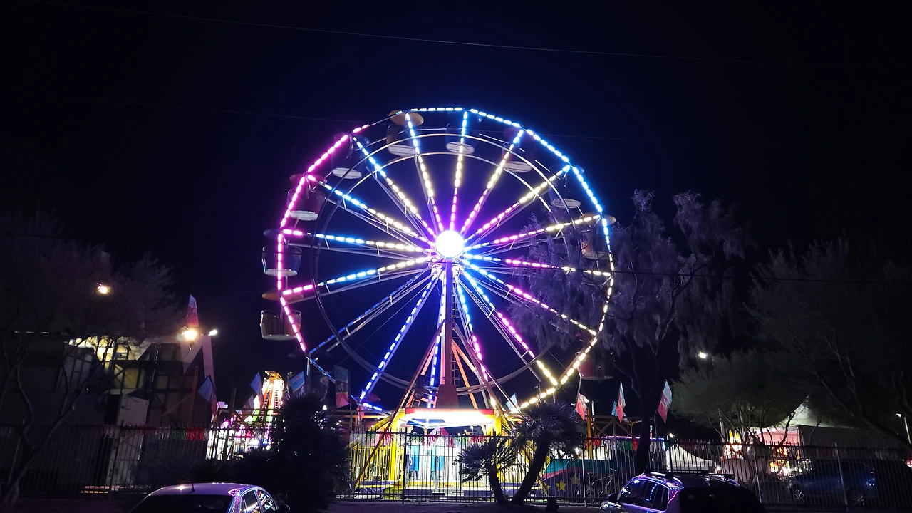 집에 다 와가는데 번쩍번쩍 조명에 둥당둥당 음악도 요란했다. M호텔 옆 공터에서 열리는 이탈리안 푸드 페스티벌 때문이었다. 입장료만 35불이라고 미친 거 아니냐며, 라이드도 음식도 비싼데다 포함도 안되는데, 입장료까지 너무 비싸다며 남편이 투덜댔다. 그러거나 말거나, 차를 잠깐 세우고 사진 찍었다. 설치된 모든 놀이기구들이 포터블. 놀이동산에 있는 것처럼 고정된 게 아니라 행사에 따라 조립했다 분리한다. 크기는 작지만 각종 라이드가 시선을 끌기엔 충분해 보였다.
