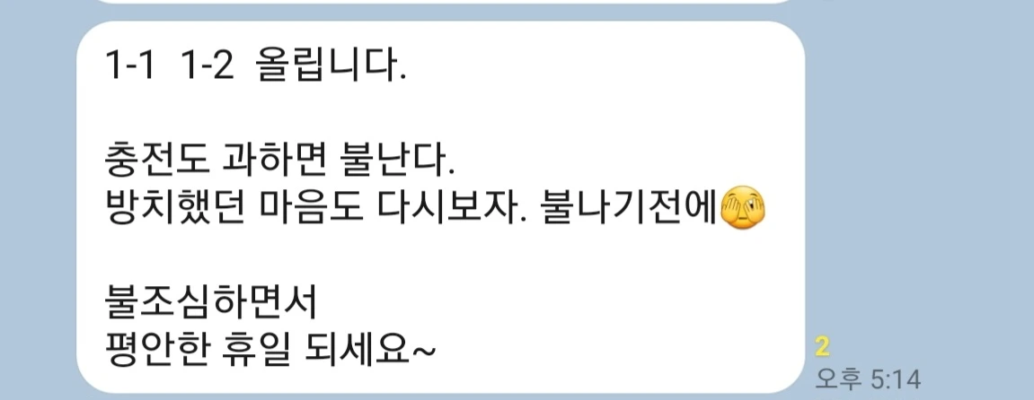 어디서 플라스틱 타는 냄새가 나서 주변을 샅샅이 훑어보니, 케이블이 지 혼자서 타버렸다며 남편이 안방으로 타다 남은 케이블을 들고 왔다. 평소엔 충전이 다 끝나면 멀티탭 대기전력 차단 버튼을 눌러뒀었다. 아침에 별생각 없이 그냥 뒀더니 파드닥 불꽃 피우고 식탁까지 녹이며 타버렸다. 일찍 출근하는 날이었다면, 부엌에 남편이 없었다면, 저 작은 불씨가 큰 불로 번질 수도 있었다.