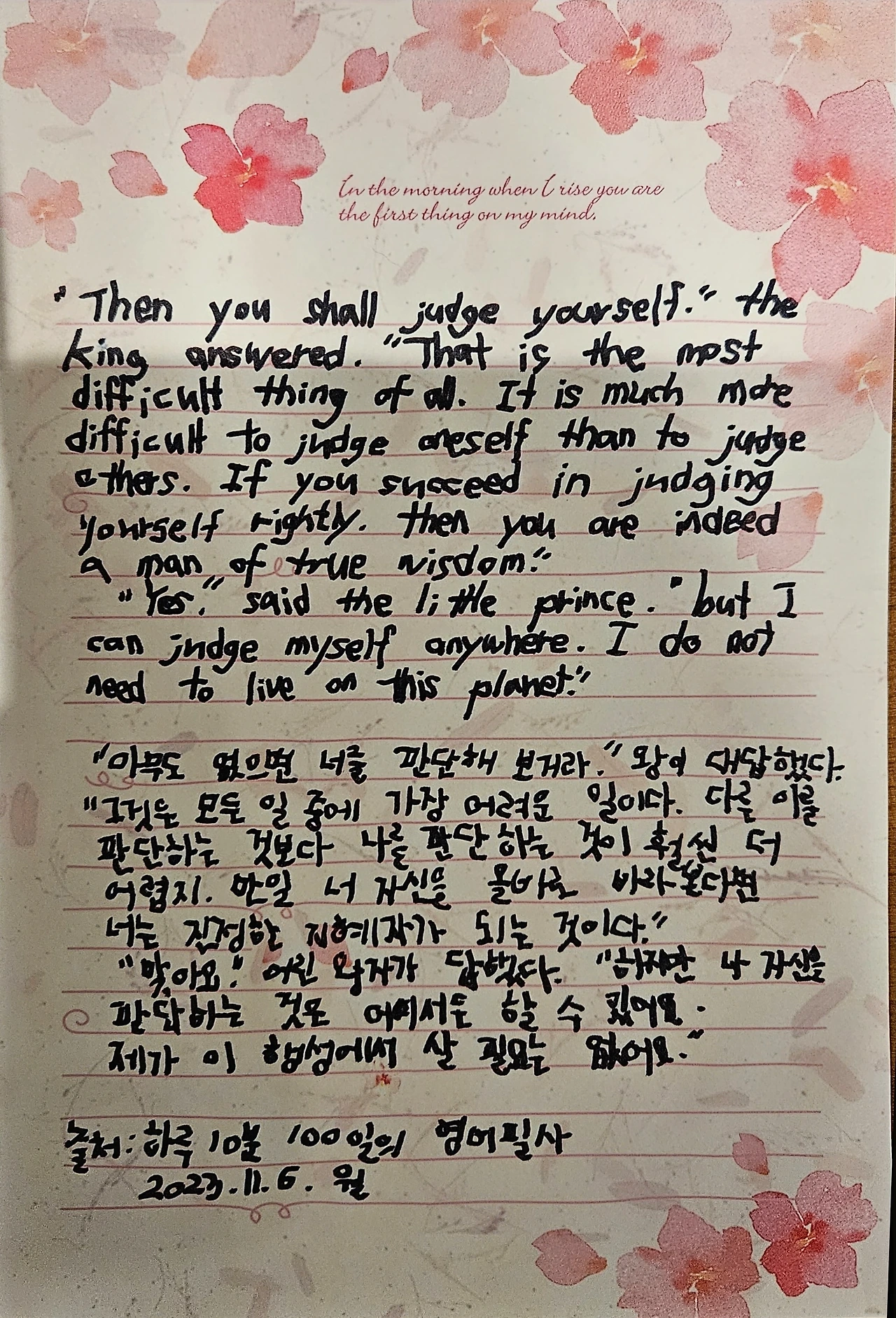 나 자신을 올바로 바라보고 판단하기. 판단이라기 보단 비난에 가까웠고, 그렇기에 더더욱 올바르지 않았던. 지혜로워지고 싶어서가 아니라도 나를 올바로 판단해 볼 필요는 있다. 다른 이를 비난하지 않으려면.