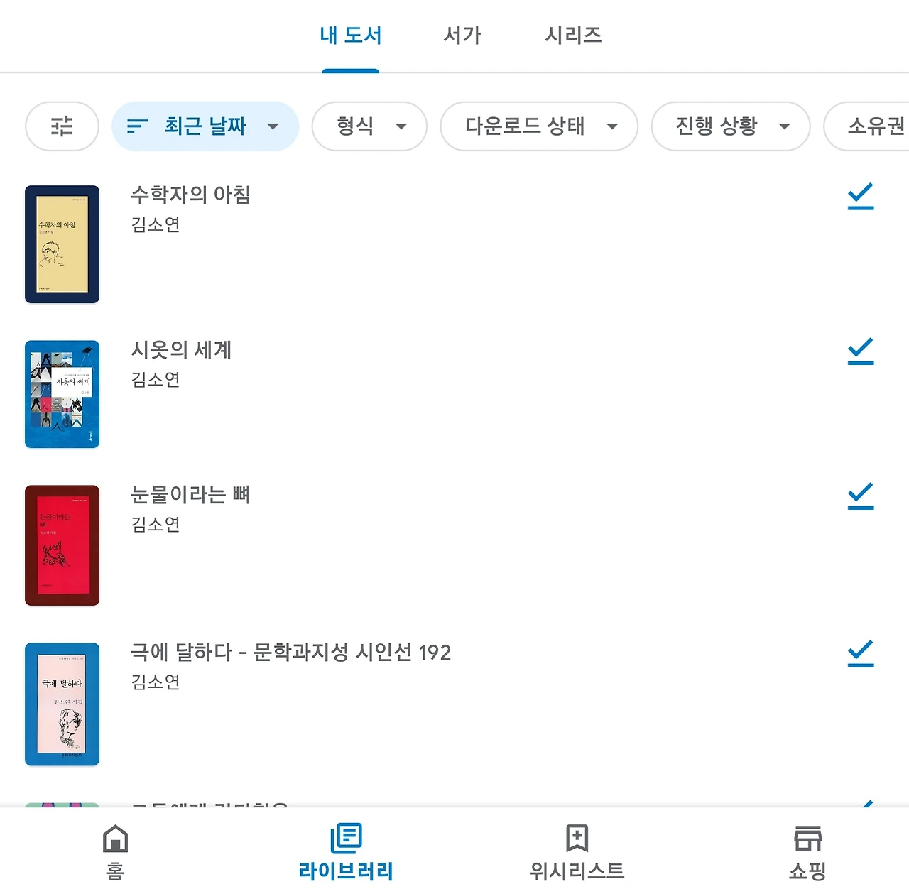기말 기간이지만, ebook으로 산 시집을 다 훑어보고 자리라! 아흑 좋아!!!