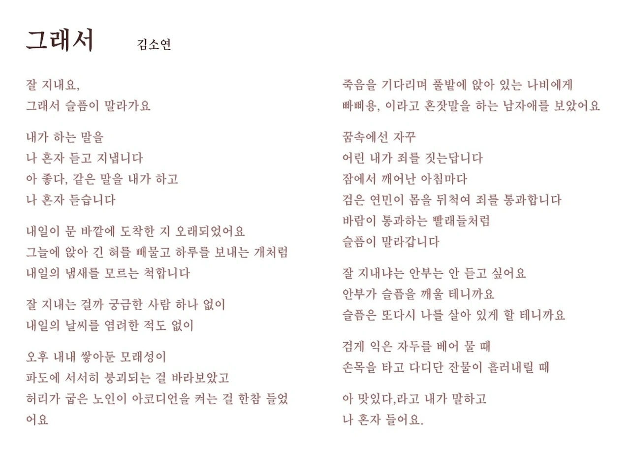 이어폰으로 강의 듣다가 "김소연"이 누군지 궁금해졌다.