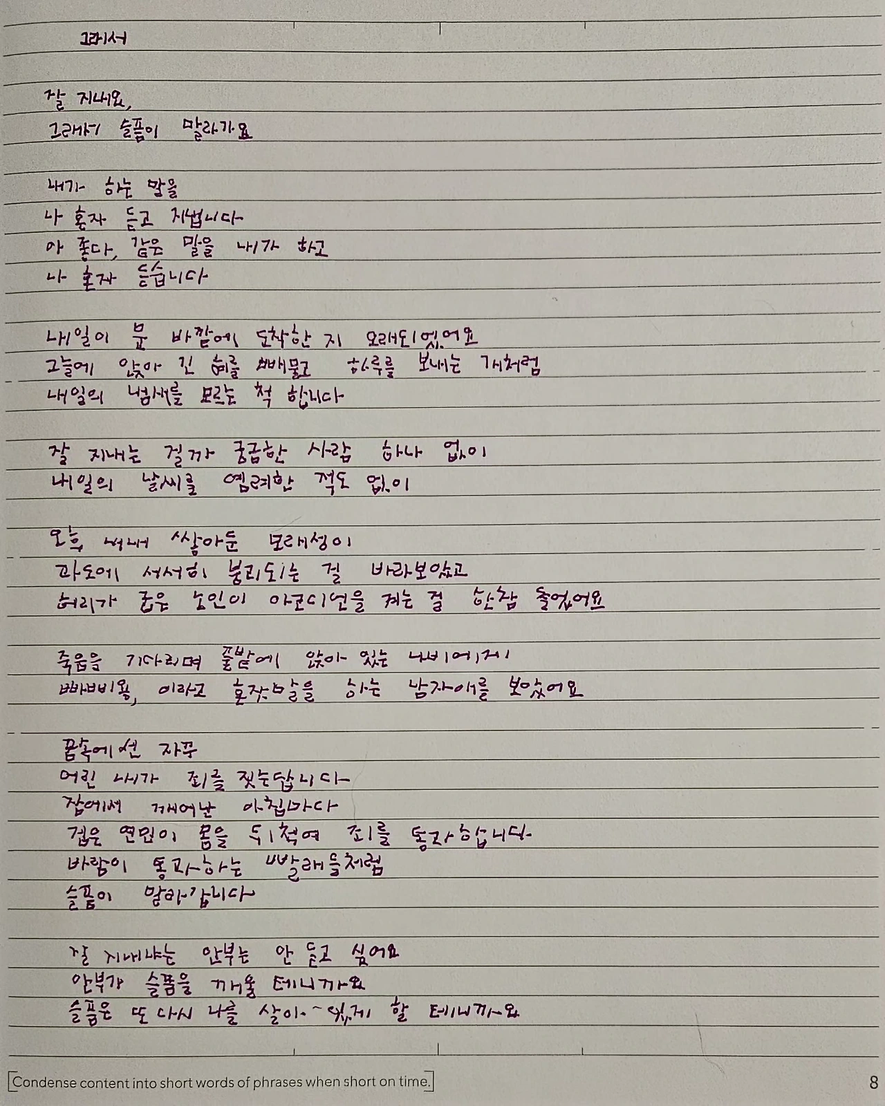 곱씹고 또 곱씹을 표현이 참 많다. 한 번 더 보면 시가 외워질 것만 같다.