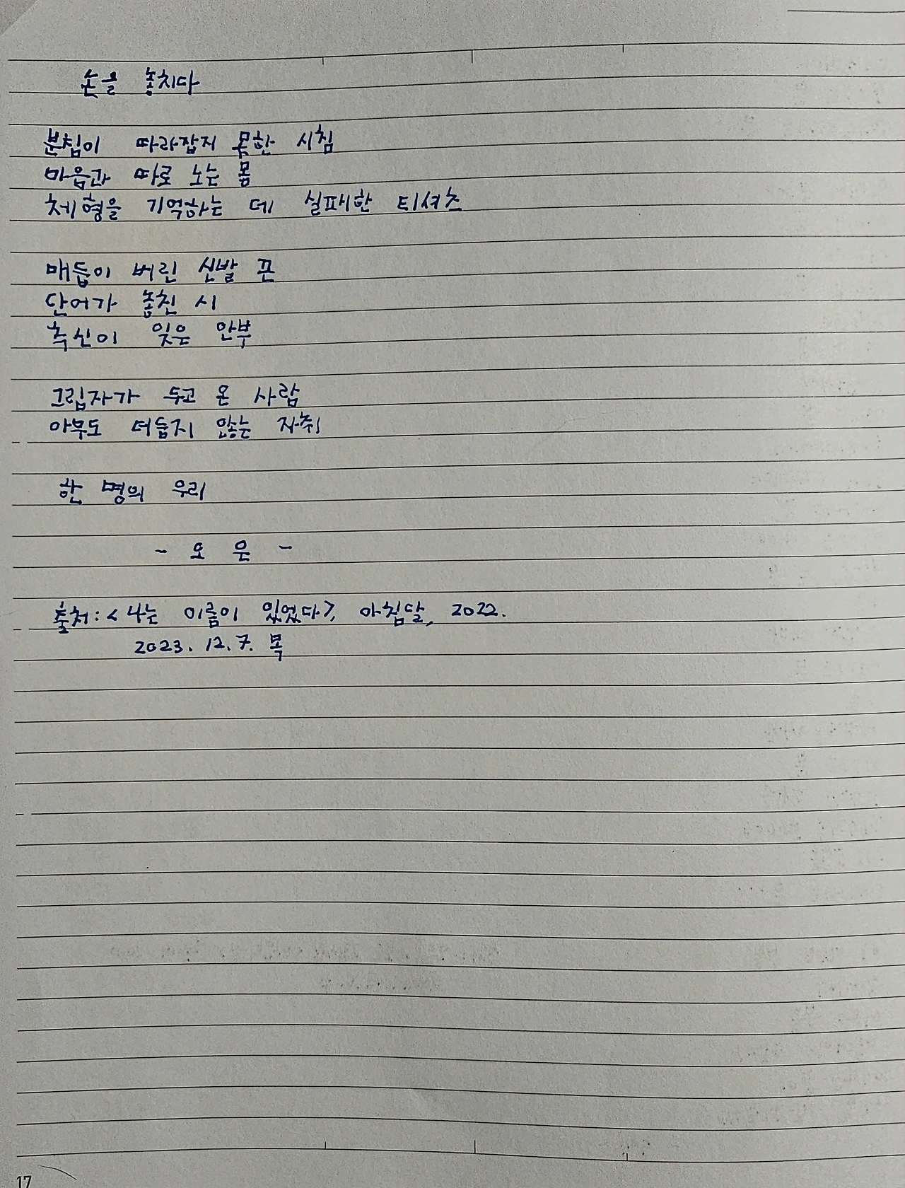 오은 <나는 이름이 있었다>, 아침달, 2022