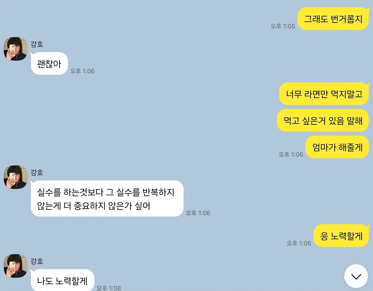 실수를 반복하지 않기로, 그렇게 우린 서로 노력하기로 했다.