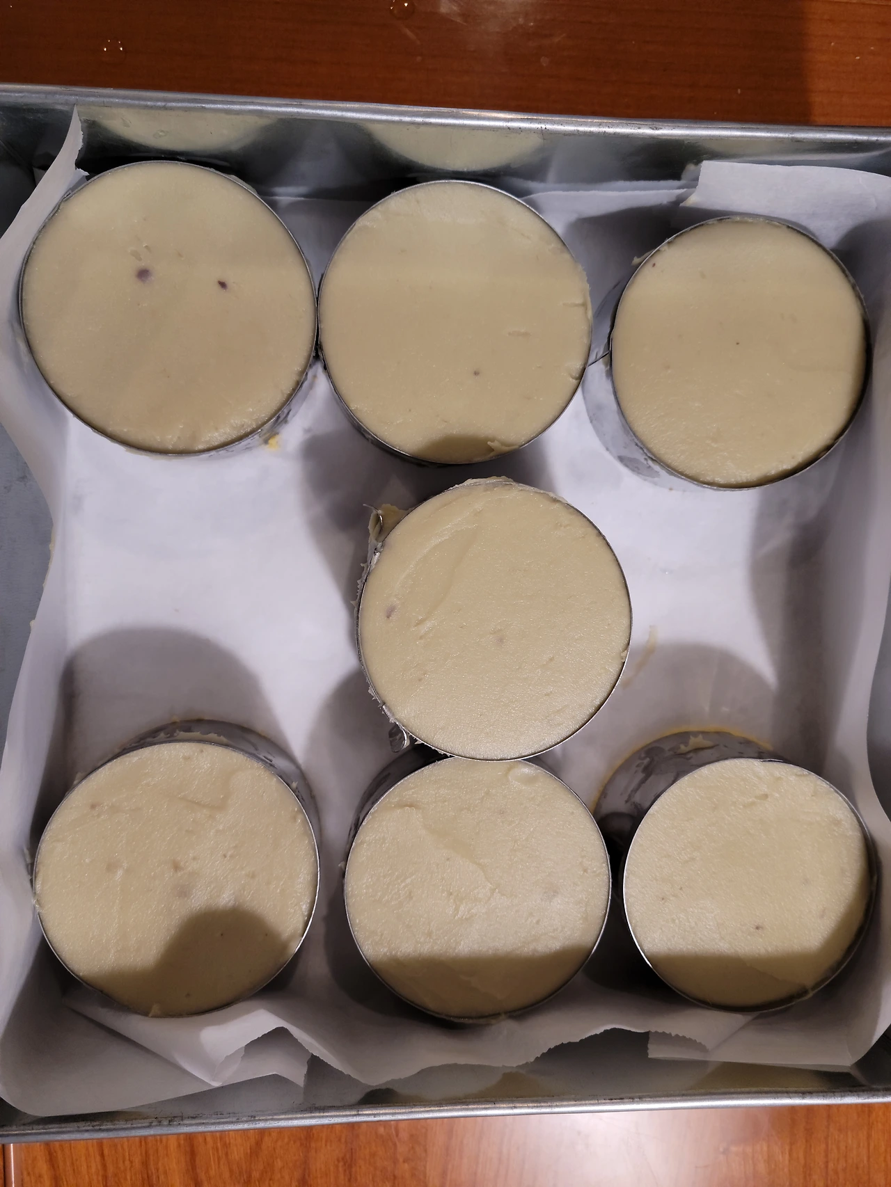 케이크 틀에 고구마 무스 만든 걸 넣어주고 얼려.