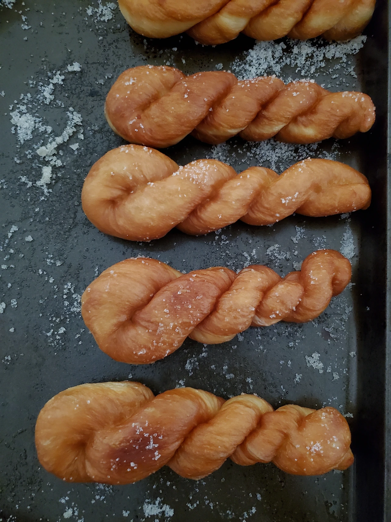 식기전에 설탕을 좀 뿌려주면 꽈배기 봐줄 만하지?
